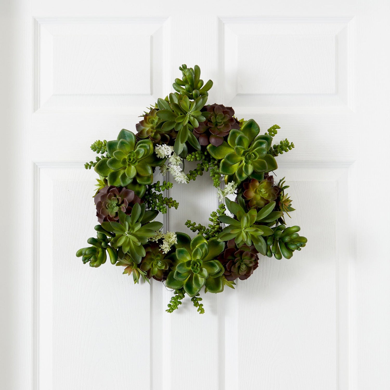 Looking for a decoration that’s soft, beautiful, and timeless? Then look no further than this beautiful magnolia wreath. Lovely greens (complete with “berries and buds”) twist and turn, creating the ideal backdrop for the billowy white blooms that spring forth. This makes for a perfect wall accent year round’, and also makes an ideal gift for that hard to buy for person.