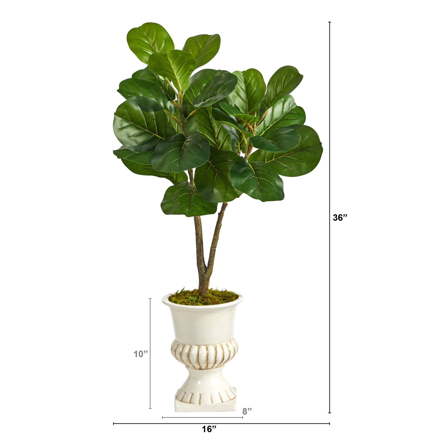 Transform your space into a jungle with the help of this artificial Fiddle Leaf Fig Tree. We know how hard it is to grow these majestic African beauties; they’re finicky, picky, and popular. Luckily, this incredibly lifelike faux Fiddle Leaf Fig allows you to enjoy the Fiddle Leaf without the maintenance. Large, glossy Fiddle Leaves stem from a thin trunk and deliver a full, bushy look full of green foliage. Standing 3' from a white urn (included in height) nestled with faux moss, curate in spaces that need some green. Perfect for apartments, narrow spaces and cozy rooms.