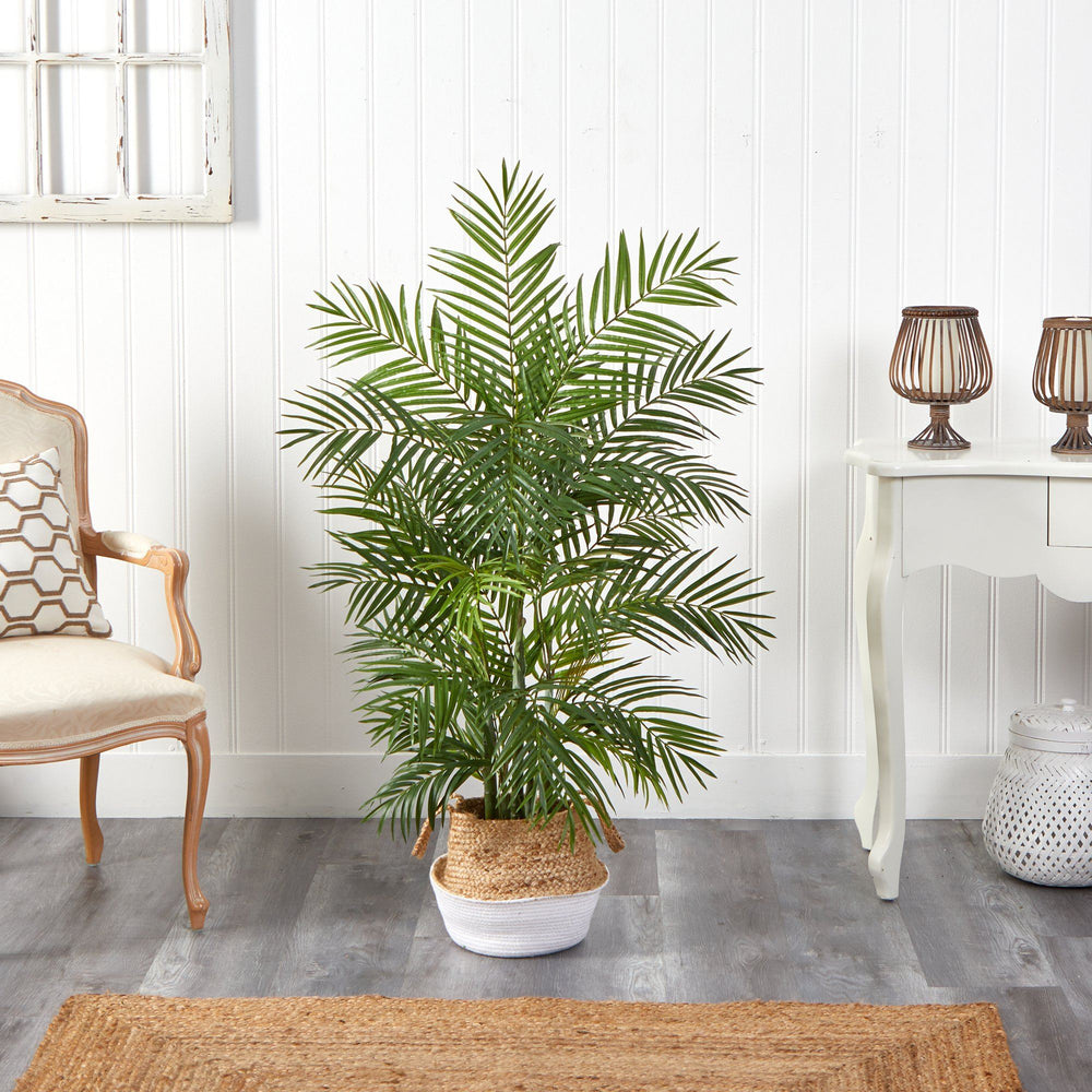 Kick back, relax and stay on vacation mood year-round with this Areca Artificial Palm Tree. Variegated long palm fronds, arch in different directions bringing symmetry and depth to any room. You can even bend them to fit in your space. Standing 4' from a boho chic planter (included in height), curate in any indoor space. Great for a patio, next to furniture or in the foyer.