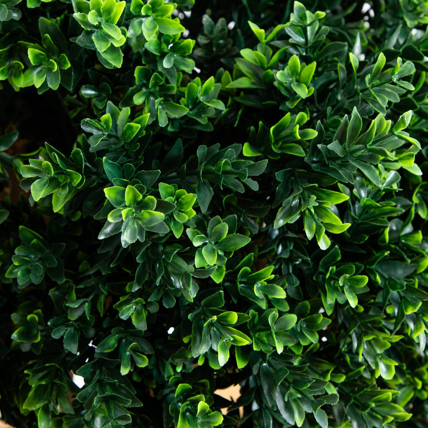Alluring and chic, the UV-resistant boxwood artificial topiary tree sports a single head of near opaque green foliage. Settle this gorgeous vertical element next to a couch, console table, or entertainment system to draw attention to these furniture pieces. You can also place it outdoors beside a large open window for a stunning finish.