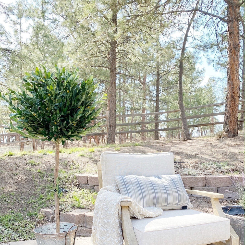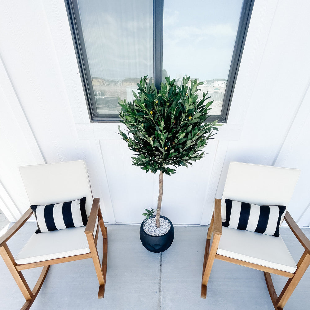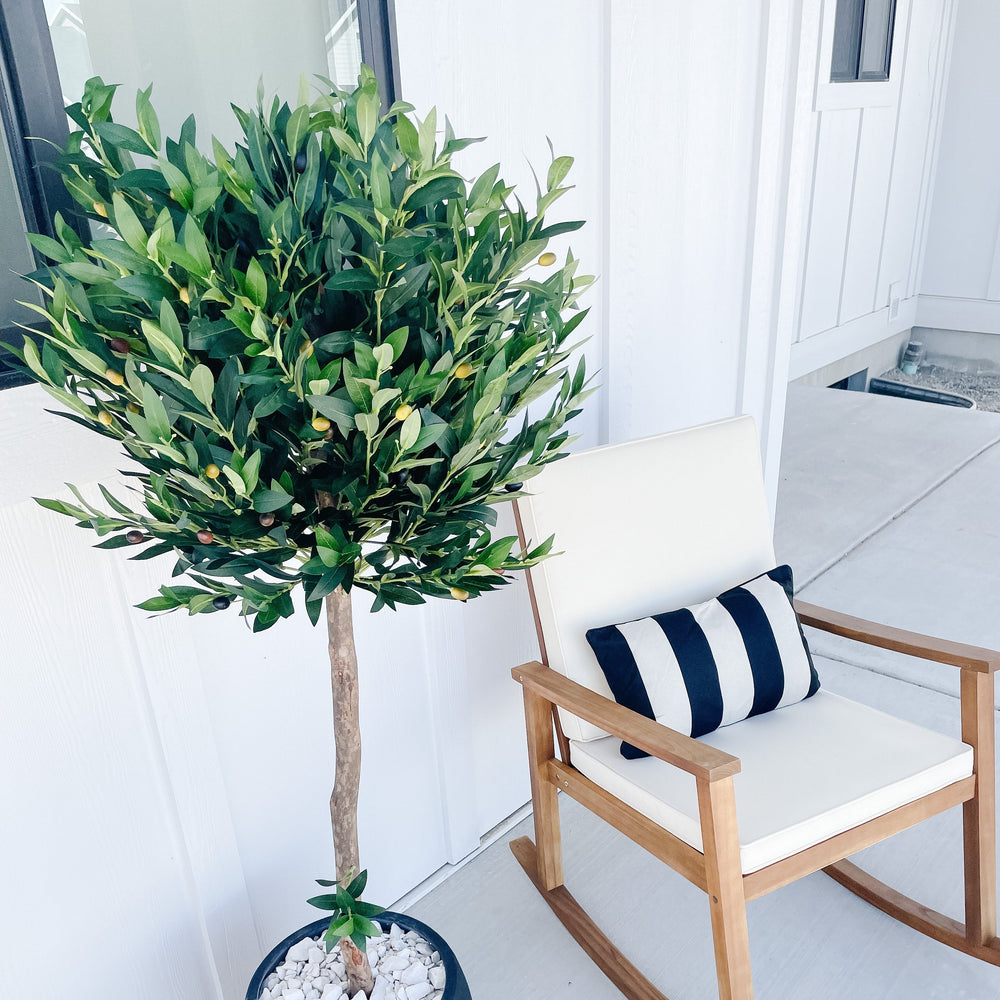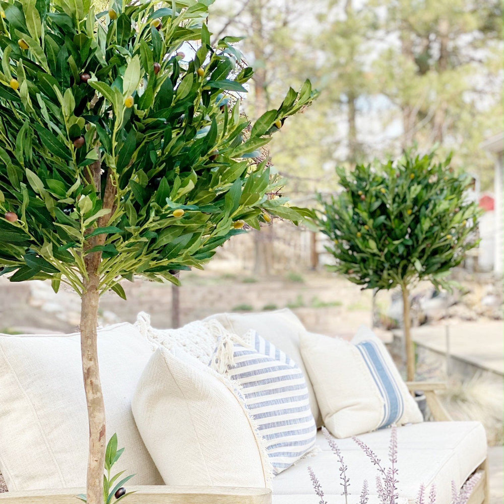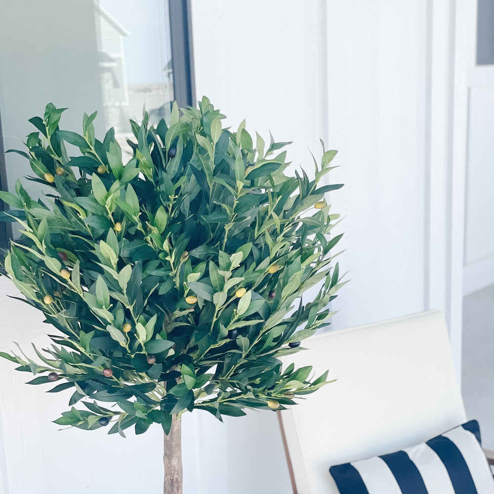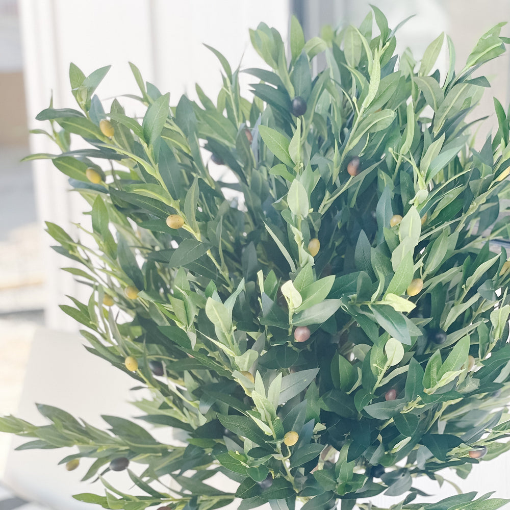 The dense dark green leaves of this artificial olive topiary tree sit atop a sturdy, realistic stem. With its skillfully trimmed appearance, this piece can fit in perfectly with any modern and contemporary settings. You can place it next to your bedroom's vanity, or settle it with real or faux succulents in your garden. With its UV-resistant green foliage, it can be used as an outdoor decoration.
