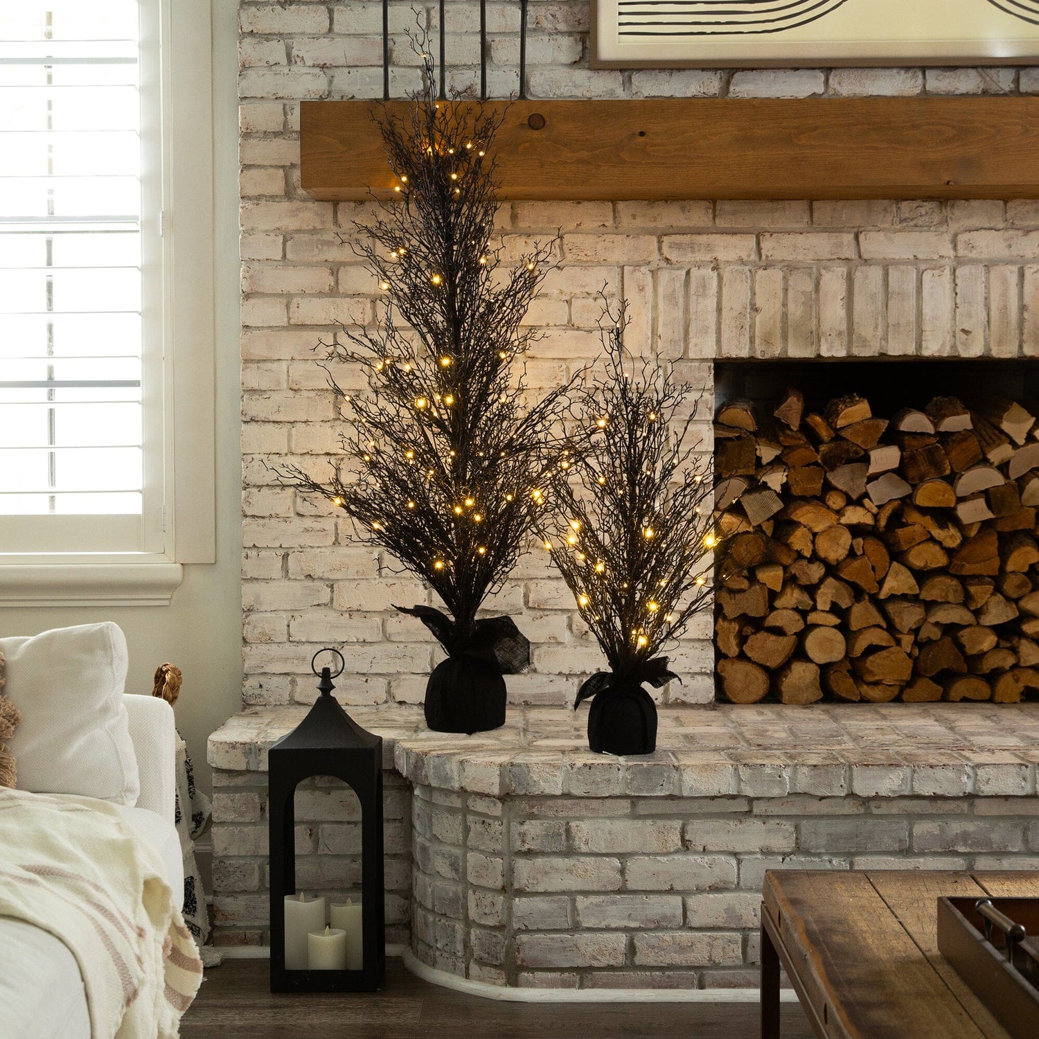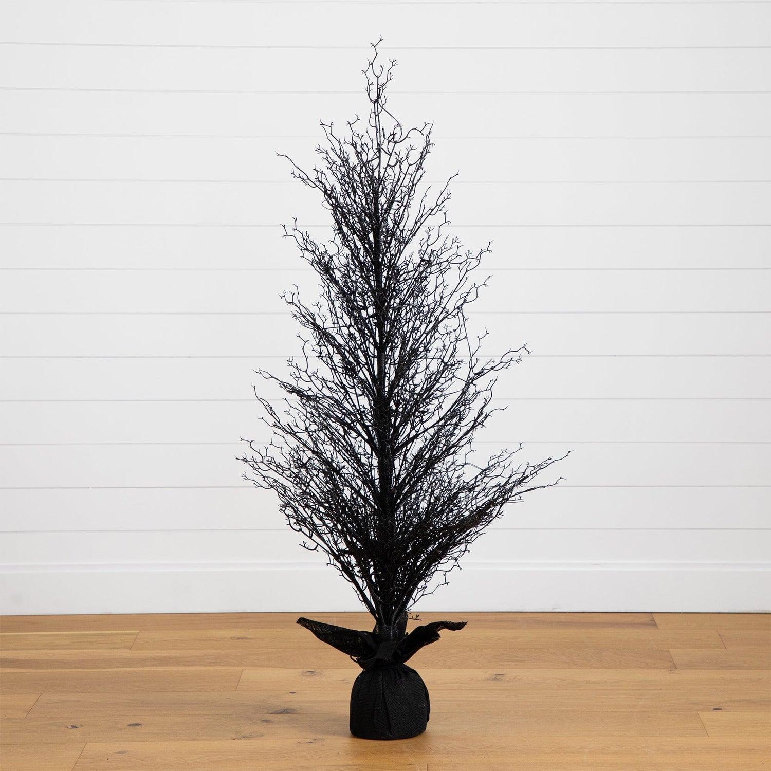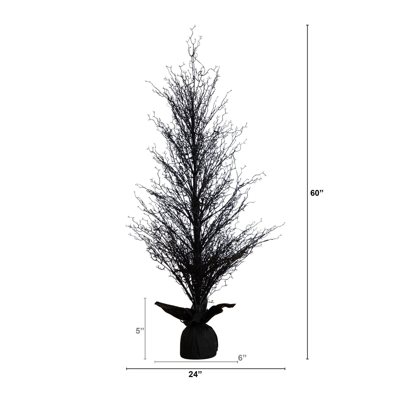Halloween doesn't have to be scary. Make it stylish with the Halloween black twig tree. Inspired by nature, feel like you're walking along Salem's picturesque autumn season on a crisp day. Crafted with attention to detail, the tree has naturally occurring details throughout and bendable branches you can shape for a custom look. The true show begins with the 85 energy-efficient LED lights accented throughout the silhouette, delivering a cozy feeling. Standing 5' from a trendy burlap, display in any area needing holiday cheer. For added fun, decorate with pumpkins, bats, wreaths and more.
