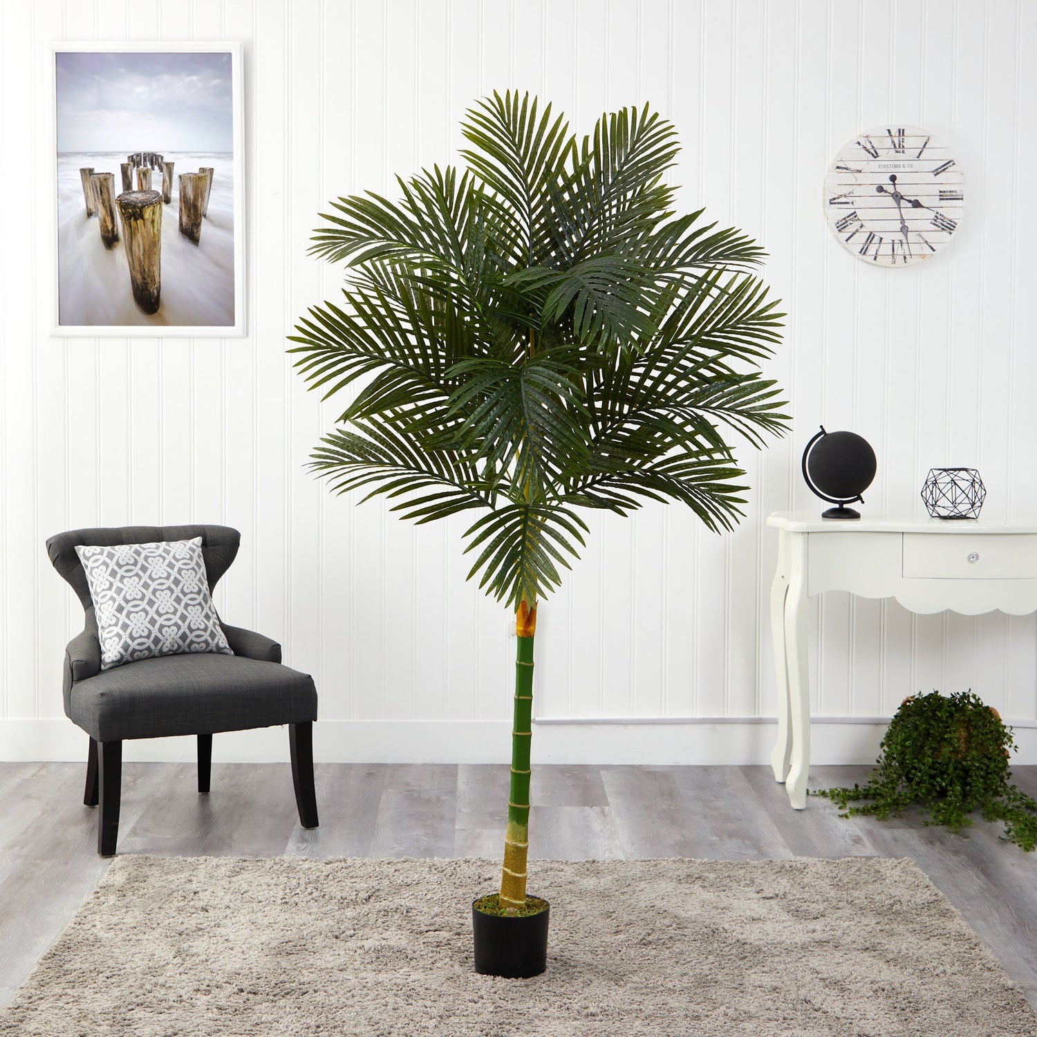 Picture your perfect summer vacation: Where you sun-soak on a hammock, feel the sea breeze hitting your face while sipping on a coconut. Luckily you can now tropic like its hot with this Golden Cane Artificial Palm Tree. It features lush, green leaves and gorgeous golden palm fronds stemming from a bamboo-like trunk with yellow hues. Standing a tall 6’ from a black planter, recreate island life in your sunroom, office (we promise smiling co-workers), or guest room. Do you want to feel the sea breeze with this tree?