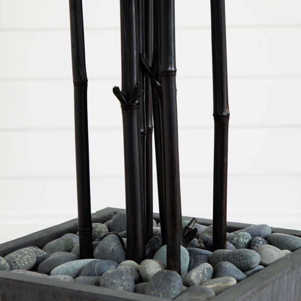 Create your own natural realism with the help of this artificial, ooutdoor-safe bamboo tree. Boasting authentic looking leaves in bright green hues supported by black detailed trunks, this 61” tall tree can easily transform all parts of your home. Situated in a slate planter accented with river rocks, you can even display it on your outdoor veranda or patio without fear of damage from the natural elements.