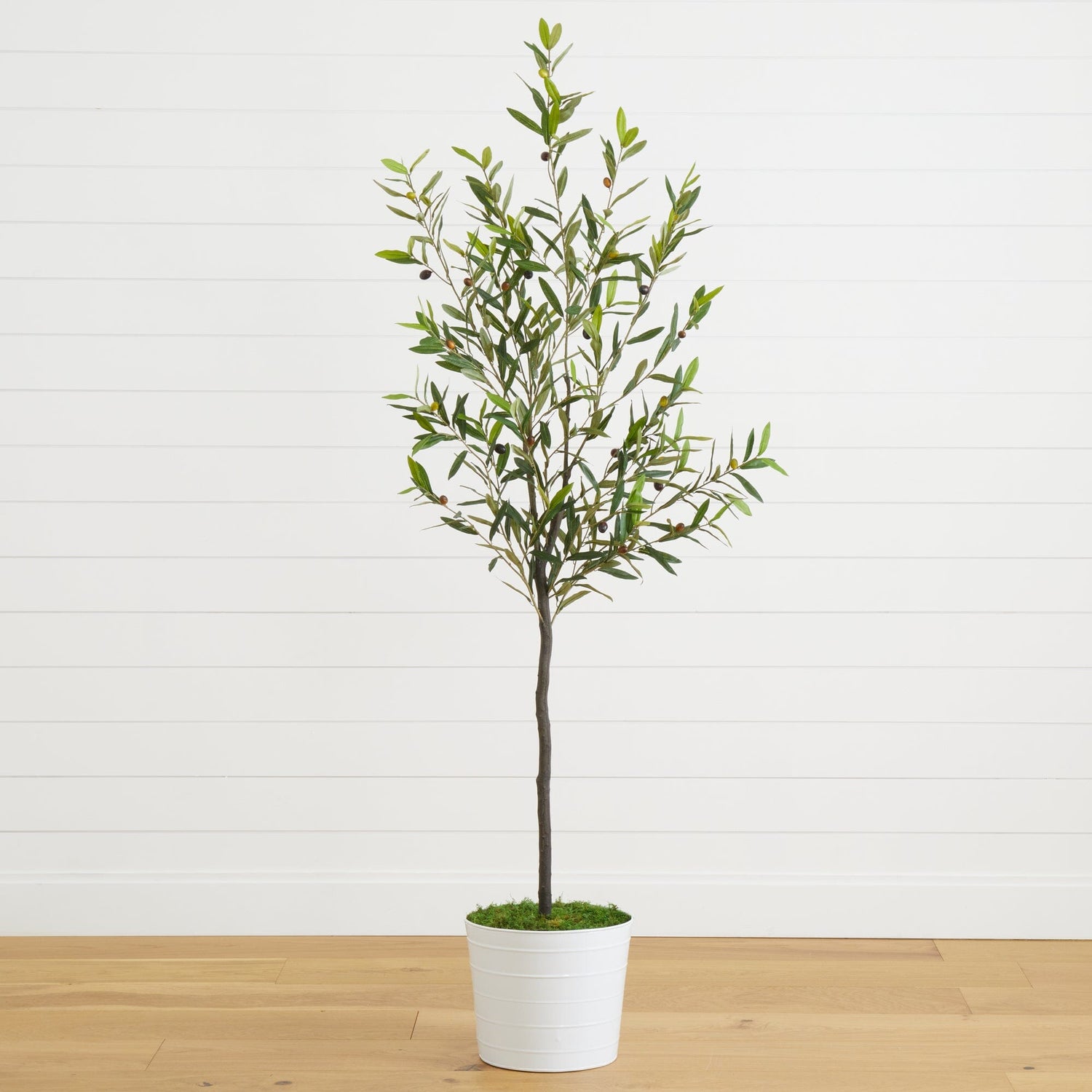 Cure your Italian wanderlust with this Olive Artificial Tree that will make all your Mediterranean dreams come true. Green olive leaves adorn the delicate stems that are accented by faux olives, so realistic you’ll want to eat them. Best of all? Zero Maintenance! This rustic faux olive tree stands 70" from a white tin planter (included in height), a Bello addition for tight spaces. Place in apartments, low ceiling rooms or bathrooms and instantly transform your space.