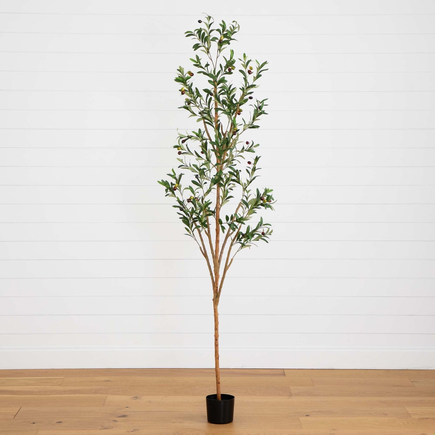Featuring a massive height of 82 inches, this artificial olive tree is the perfect vertical accent for your home. It has thin brown stems that branch out with fine and delicate bright green leaves adorned with faux olives. You've probably seen this customer-favorite tree on social media on any home décor influencer’s page.