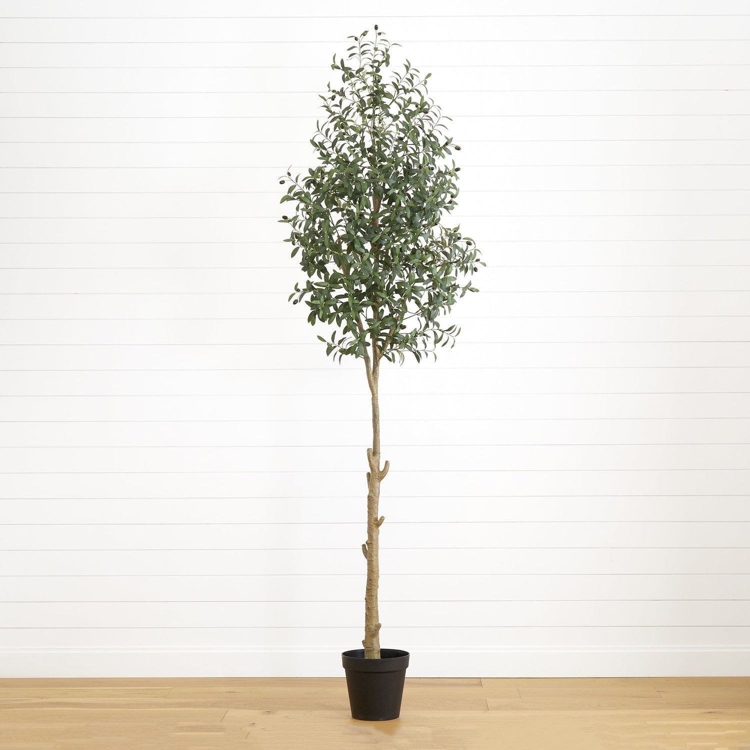 Get ready for the next big thing in home decor - our new olive trees! Inspired by the most famous tree on social media and its distant cousin from the Mediterranean, these trees are sure to impress. With lush leaves in varying shades of green and accents of faux olives, they add a striking yet relaxed touch to any space. Crafted from high-quality materials by expert horticulturists, they are the perfect addition to any tall room and you can customize them by bending the branches. Standing at 9' and potted in a nursery planter, you can even customize them by placing them in your own planter. For a cohesive look and feel, we offer them in many sizes, making them the perfect item to complete a home.