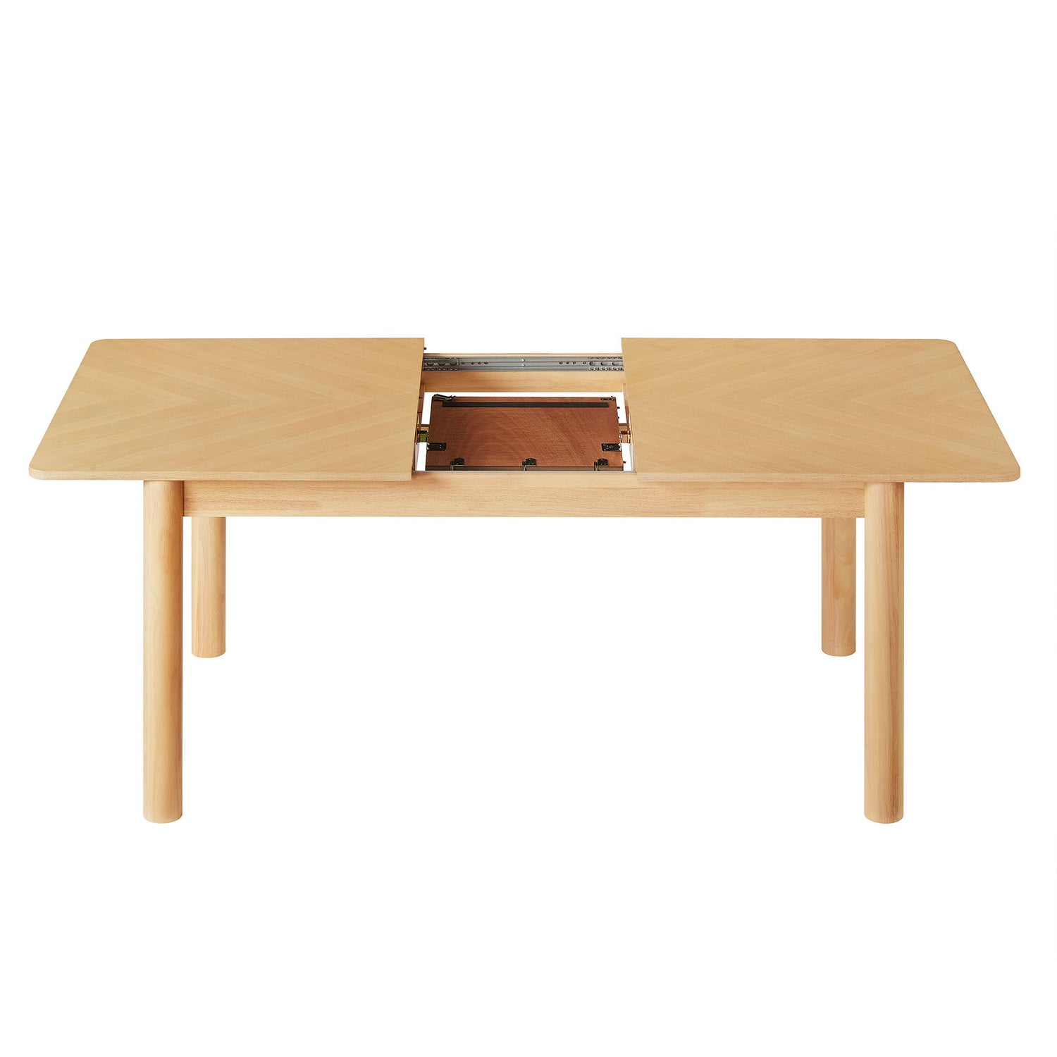 Designed with both everyday ease and special occasions in mind, the Alba Extendable Dining Room Table brings flexible function and clean-lined style to your dining area. A chevron-patterned wood veneer top offers a subtle geometric accent, while softly rounded legs provide a modern yet relaxed presence that fits beautifully in contemporary or farmhouse dining room settings. Measuring 59 inches closed and extending to 75 inches with the built-in leaf, this rectangle dining table easily transforms into a stunning wood dining table for 6�8 people�ideal for holiday dinners, work sessions, or as a sleek conference table for creative teams. Non-marking foot caps protect your floors, and simple assembly makes setup smooth from the start. Weight Capacity: 400 lbs.