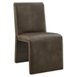 With its smooth curves and continuous form, the Emory Faux Leather Dining Chair brings an elegant, contemporary feel to any space. Wrapped entirely in premium pebbled vegan leather, this single slipper dining chair features a tall, gently angled backrest that provides support while maintaining a clean, minimal profile. The padded seat flows into the base with a waterfall edge that adds both comfort and balance. Its armless shape and crisp lines make it easy to style around a dining table or as a padded bedroom chair, or living room accent chair. Built with a sturdy internal wooden frame and finished with non-marking foot pins, Emory arrives fully assembled and supports up to 300 lbs.