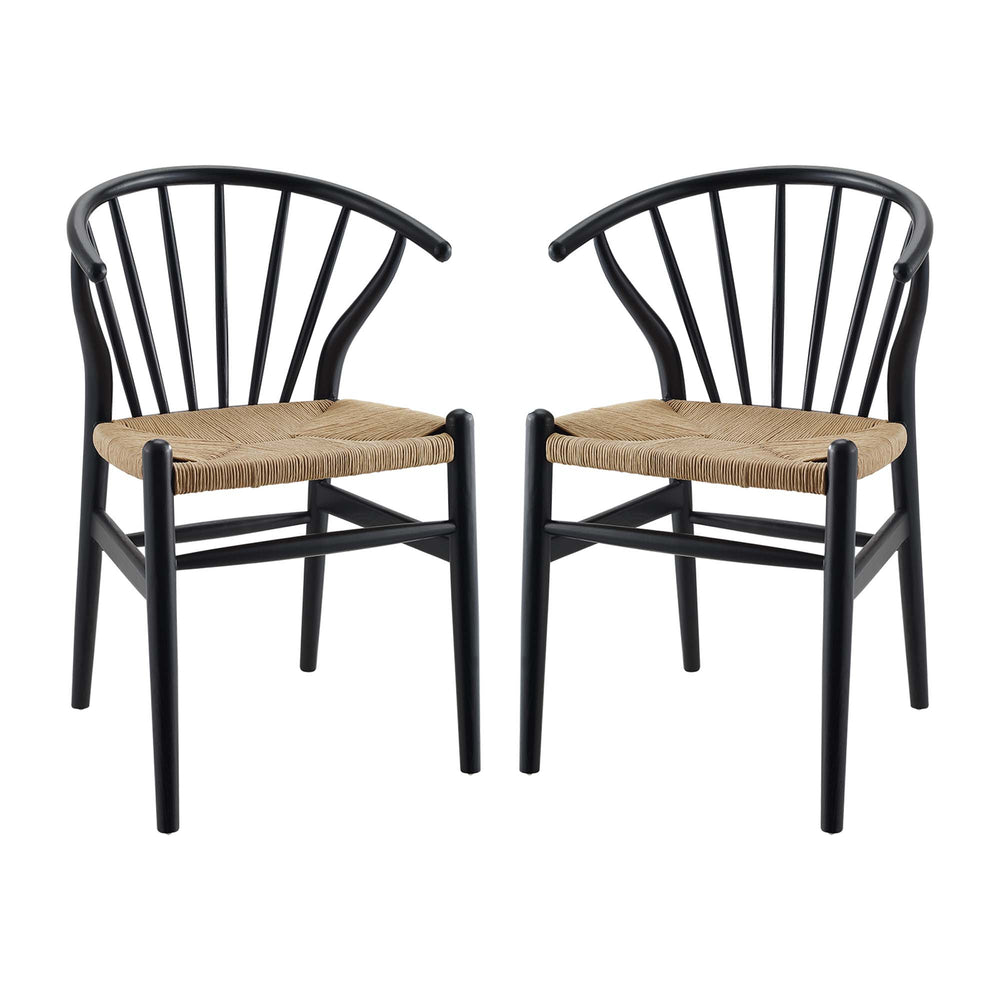 Bring Scandinavian style to your dining space with the Flourish Dining Side Chair Set of 2. Featuring a sweeping curved back, tapered wood legs, and classic spindles, the modern farmhouse design of this dining chair gets a contemporary update with delicate craftsmanship and stylish detail. The seat is made of paper rope, a new twine that is soft, anti-static and durable, while providing beautiful contrast and a soft texture. Complete with a solid wood frame and support rods make this piece a lasting choice for the dining room, kitchen table, or living area. Complement a variety of d�cor settings from mid-century to contemporary modern with this wood dining chair set. Weight Capacity: 286 lbs