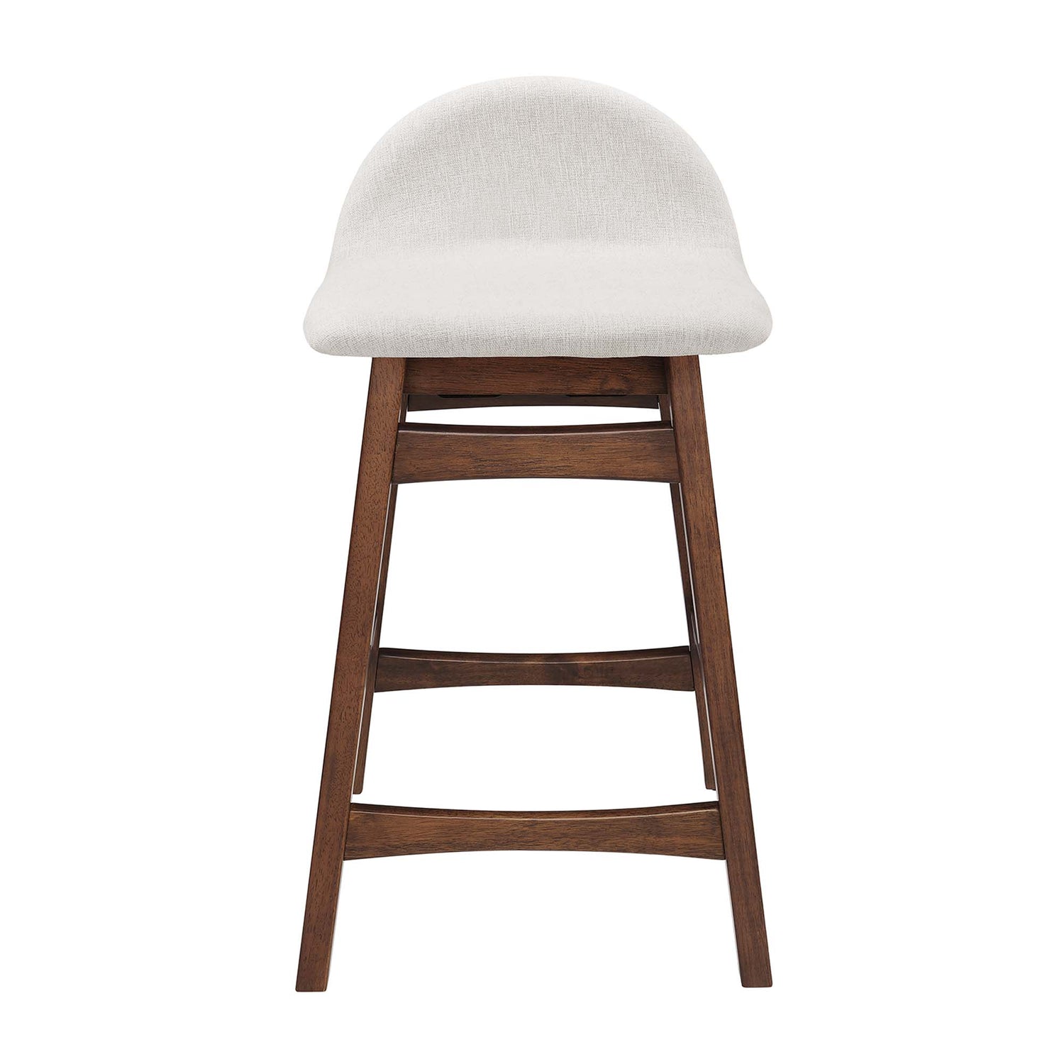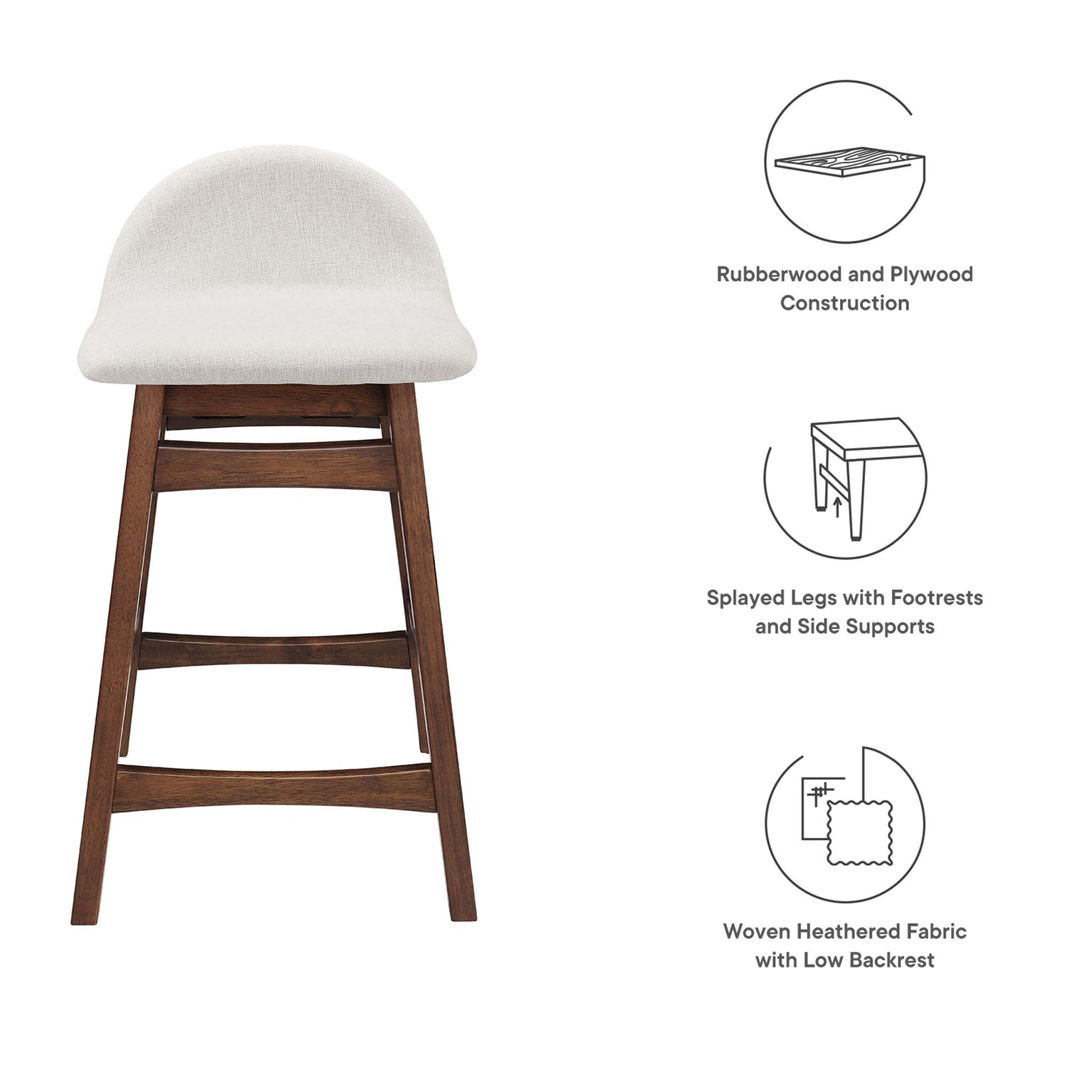 Invite lighthearted banter and deep conversations as you perch on the Juno Counter Stool Set of Two. This set counter stools boasts splayed rubberwood legs and durable plywood seat, upholstered in woven heathered fabric. The unique arched contour of the low backrests, paired with integrated footrests and side supports, ensures optimal comfort for lasting sit-downs. With a mix of vintage-modern style and mid-century appeal, this pair of counter stools is multifaceted, whether used as kitchen stools, pub chairs, or unique dining accents. Ideal for kitchens, bistros, counter nooks, dining islands, and entertainment areas, the Juno Counter Stools effortlessly complement any decor. Assembly required. Weight Capacity: 220 lbs.