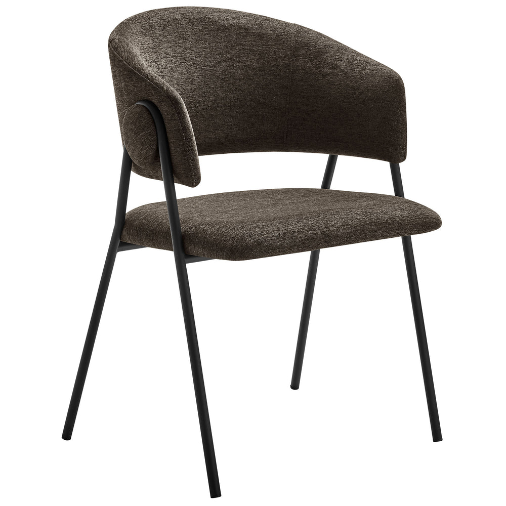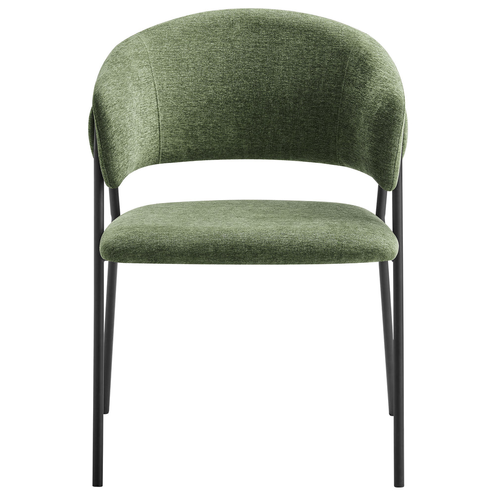 Meet Nella�a pair of dining room accent chairs that blend vintage charm with versatile functionality. The seat and backrest on these padded chairs are each elegantly upholstered in heathered chenille fabric and feature a stylish gap between them, shaping the elegant contour of an open back armchair. This set of 2 barrel dining chairs stand on splayed metal legs that gracefully ascend and curve around a decorative round button, enhancing the club chair's retro aesthetic. Each leg is thoughtfully finished with foot pins to protect your floors, ensuring practicality complements style. The Nella Chenille Upholstered kitchen table chairs do require assembly but simple instructions are included, so you can have these comfy dining chairs set up in no time. Ideal for placement around a dining table or as living room accent chairs, these curved back dining armchairs are designed to complement your interior and offer a delightful seating experience. Perfect for those who value a mix of contemporary and mid-century styles, the Nella accent dining chairs introduce a tasteful highlight to any area. Weight Capacity: 330 lbs.
