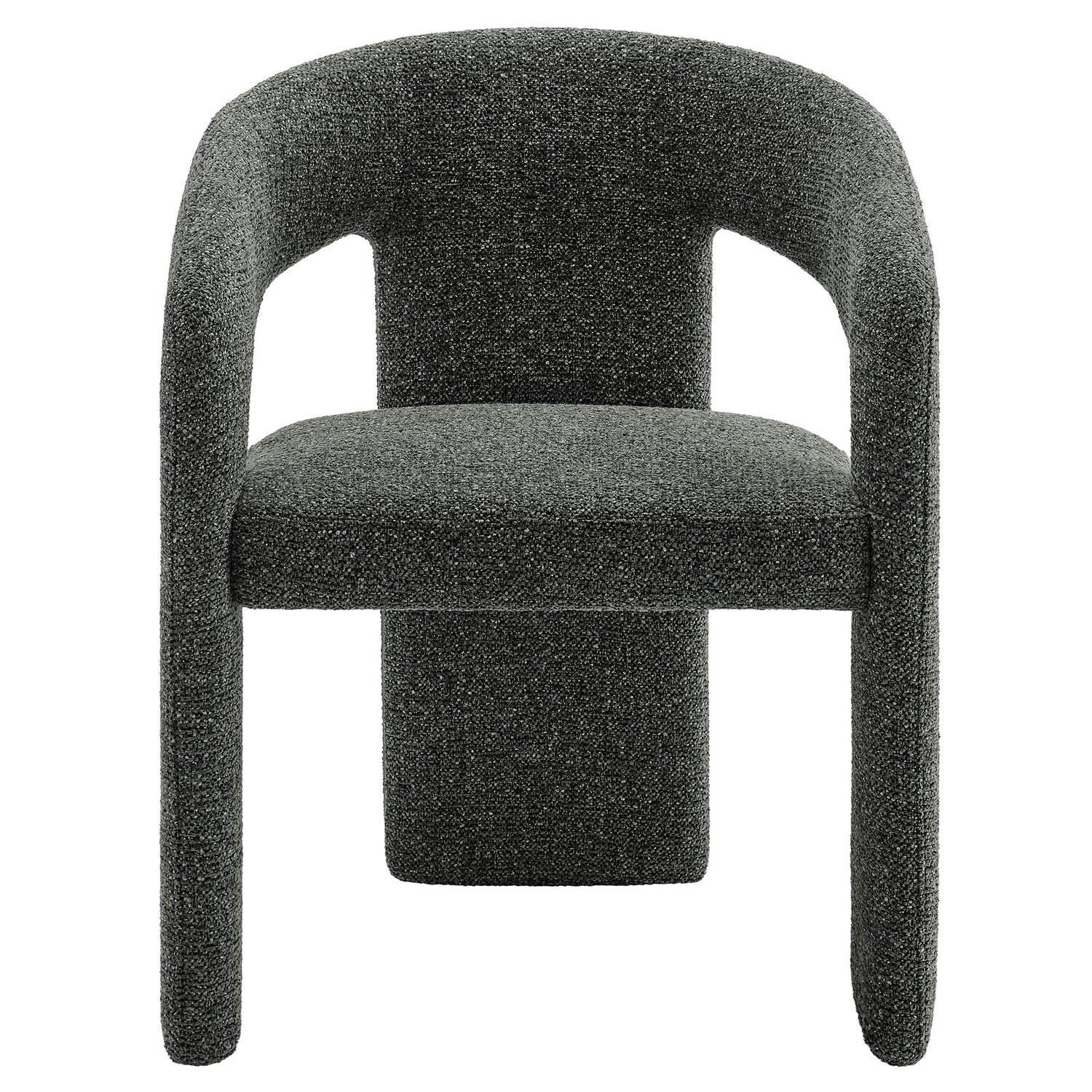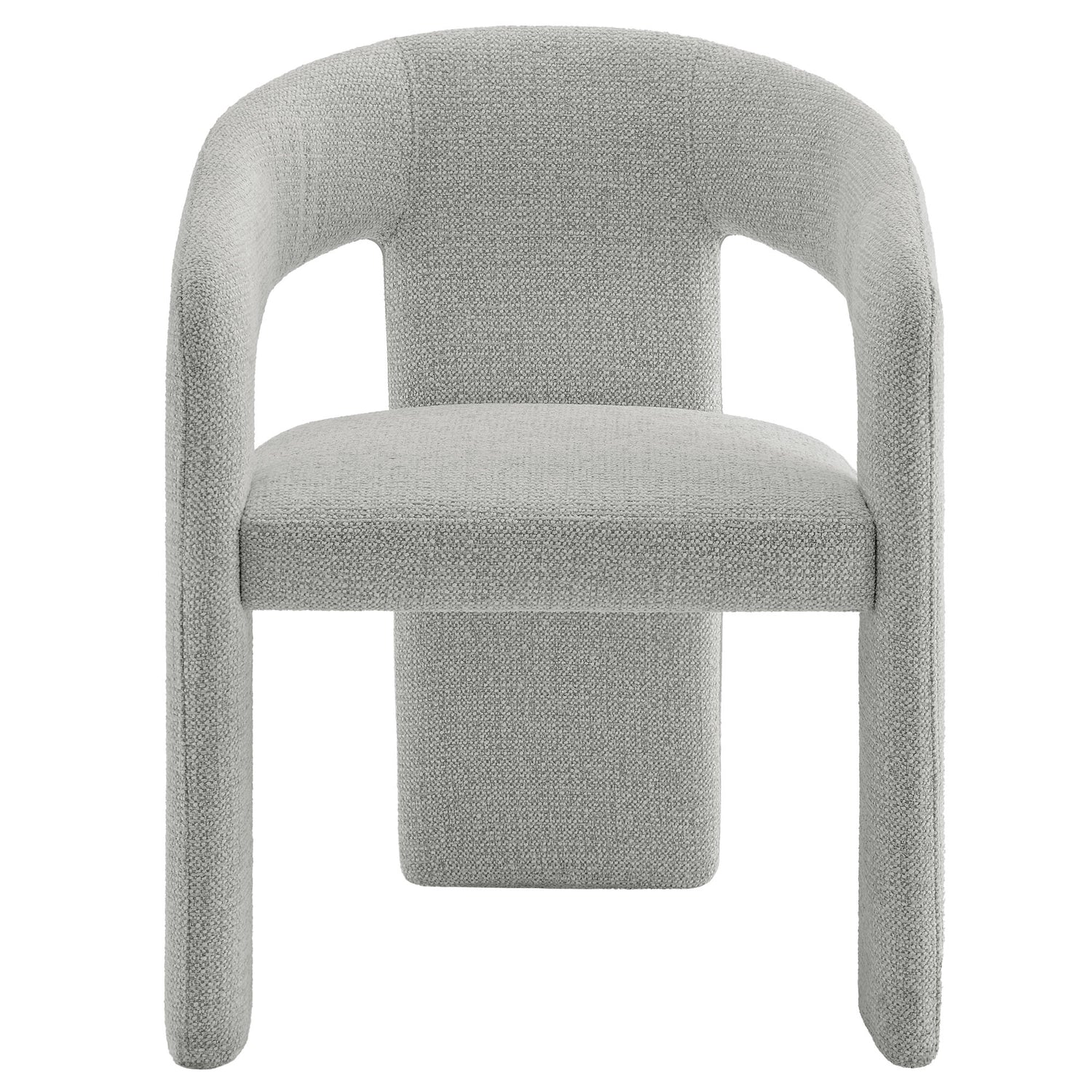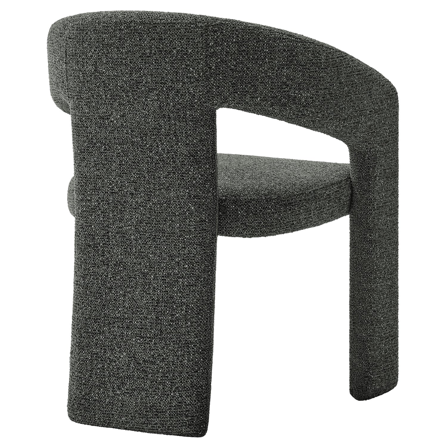 Embrace the perfect blend of modern style and versatile functionality with the Oslo Barrel Dining Chair. Featuring a striking design and unique three-leg frame, this open back chair makes a bold statement in any dining or living space. Fully upholstered in soft textured fabric with captivating depth, the Oslo Accent Chair is as inviting as it is stylish. The barrel-shaped curved back and padded seat offer ergonomic comfort, making it an ideal choice for long meals, work sessions, or relaxation. Better for you and the environment, the upholstery fabric is also OEKO-TEX� STANDARD 100 certified. Supported by a durable metal frame hidden beneath the luxurious fabric, this versatile upholstered chair is as sturdy as it is sleek. Equipped with non-marking floor glides and arriving fully assembled, the 3-leg chair effortlessly enhances any modern dining room, kitchen, or living space. Weight Capacity: 300 lbs.