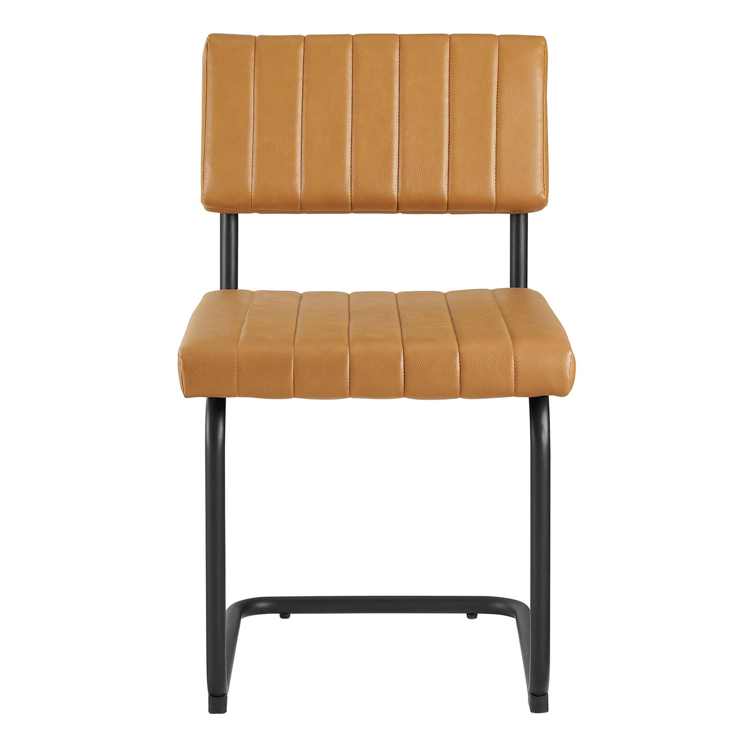 Bring mid-century style to your dining space with the Parity Dining Chairs - Set of 2. These side chairs feature smooth vegan leather upholstery that is channel tufted for a retro modern look. The powder-coated tubular metal sled bases provide a sleek silhouette and superior durability with a weight capacity of 330 lbs. These dining chairs are equipped with non-marking foot pads to protect flooring and dense foam padding for added comfort and support. With both retro modern and vintage style, this set of two dining side chairs brings a unique flair to your dining room, kitchen space, or living area. Assembly is required.