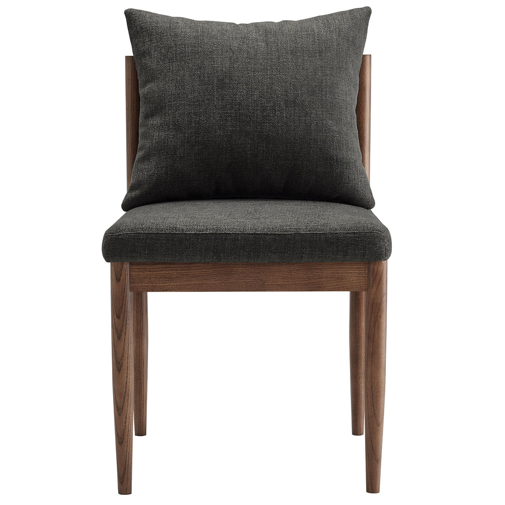 Blending modern elegance with timeless craftsmanship, the Remington Wood Dining Chair offers a refined seating experience. This armless dining chair features a solid elm wood frame with a rich finish, showcasing clean lines and an open back design. The foam-padded seat and removable back pillow are wrapped in a slub weave fabric, adding texture and comfort to dining, kitchen, or living spaces. Tapered legs bring a Scandinavian touch, while non-marking foot glides protect floors. Whether as a dining room chair, upholstered side chair, or accent chair, Remington’s sophisticated design complements any contemporary setting. Arrives fully assembled. Weight Capacity: 300 lbs.