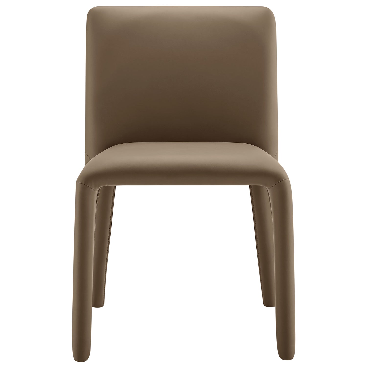 Bring an understated sophistication to your dining or living space with the Rhodes Faux Leather Dining Chair. Fully wrapped in smooth, vegan leather�including the legs�this modern accent chair exudes sleek elegance. The dining side chair's fully upholstered minimalist design features a high square backrest with subtly rounded edges and a padded seat for exceptional comfort. Perfectly suited as a side chair, desk chair, or as a living room accent chair, Rhodes complements a variety of interiors, from contemporary to mid-century modern. Non-marking floor glides protect your floors, and this faux leather dining chair arrives fully assembled for effortless setup. Weight Capacity: 300 lbs.