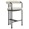 Bringing an artful modern vibe to your space, the Turin Curved Back Counter Stool boasts a sculptural silhouette and inviting design. Featuring a rounded, open frame with a padded rolled backrest, this inspired barrel stool blends bold shapes with soft textures for a look that�s both contemporary and sophisticated. Upholstered in boucle fabric, this metal counter stool adds cozy texture and luxurious depth to any room. Its powder-coated metal frame includes a unique stretcher detail, offering a clean, streamlined aesthetic while ensuring lasting durability. Perfect as a counter-height stool for your kitchen, island, or counter-height table, Turin�s unique design elevates any setting from dining areas to living spaces. With non-marking adjustable floor glides and no assembly required, this boucle stool with open back makes stylish living effortlessly easy. Weight Capacity: 300 lbs.