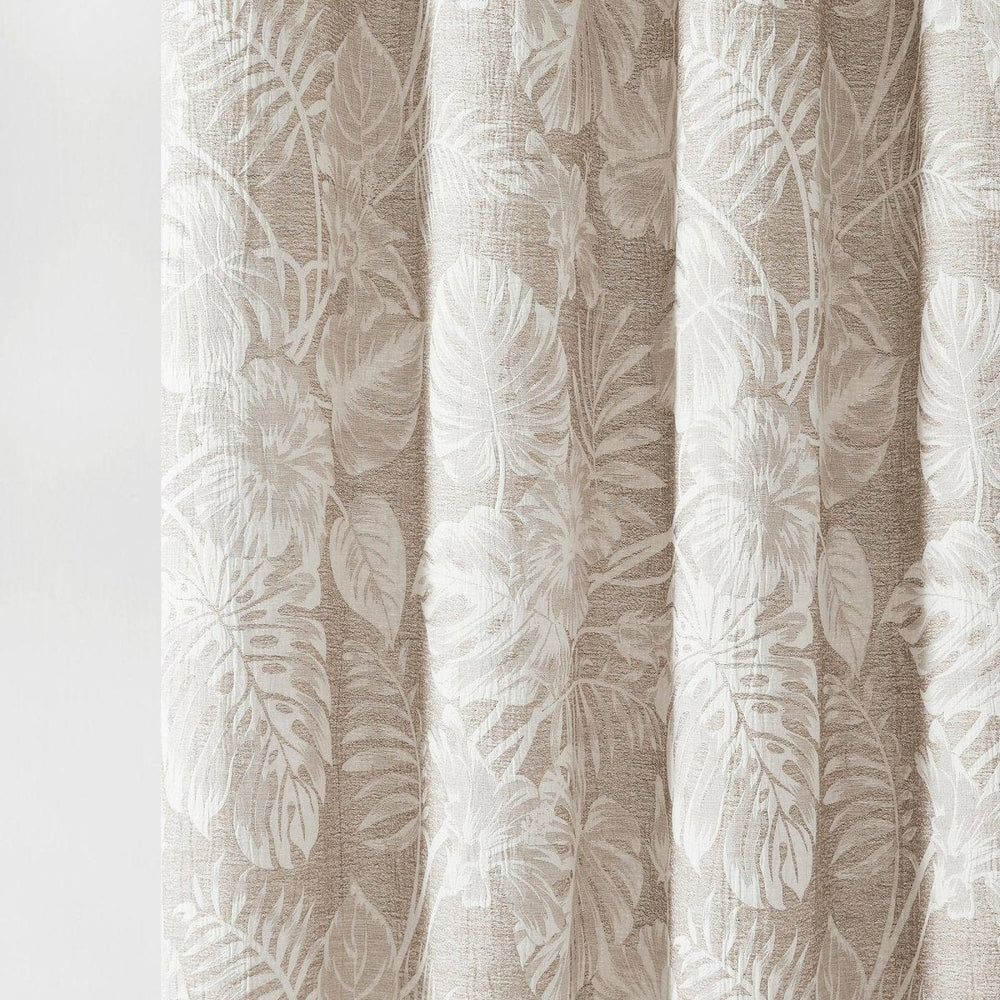 Bring resort vibes to your home with this palm-print tropical shower curtain. It's the perfect centerpiece to any boho or coastal styled bathroom. Made from a lightweight cotton fabric blend that adds texture and measures 72 inches wide by 72 inches long. Installation is easy with 12 button holes at the top to hang with shower hooks or rings. Pair this fabric shower curtain with a liner, sold separately. Machine washable for easy care.