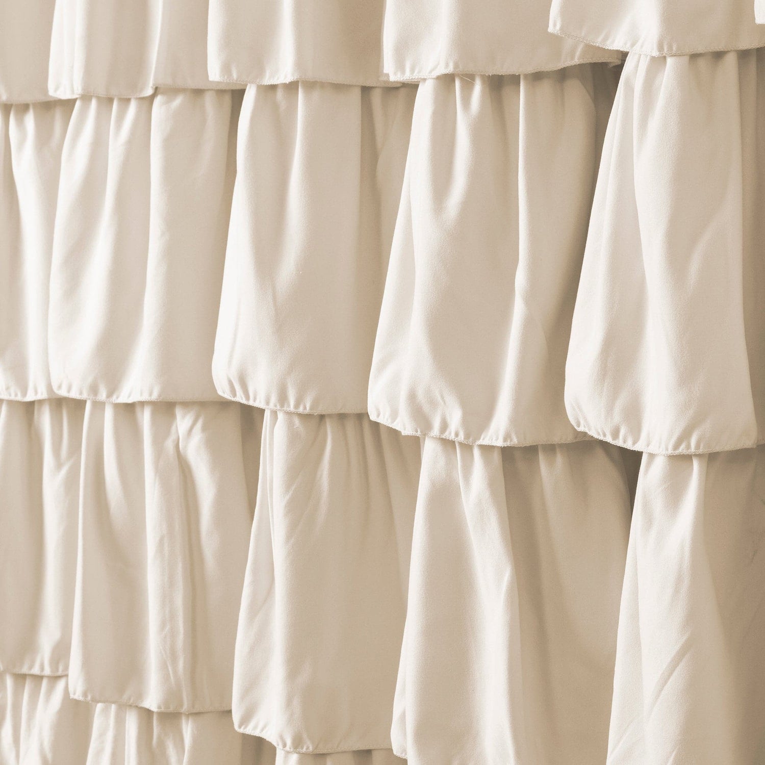 Part of the Ruffle Collection.- Shower Curtain: 72"H x 72"W
