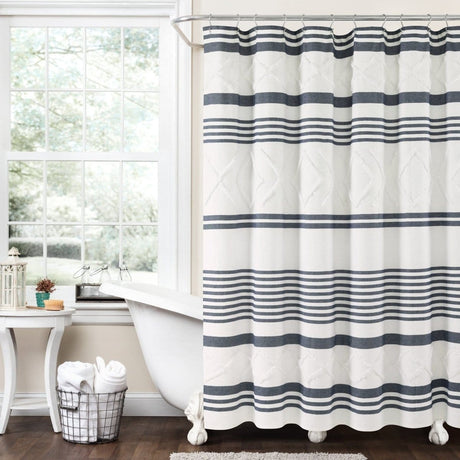 Waffle Stripe Woven Cotton Shower Curtain