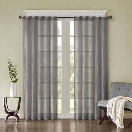 Solid Crushed Curtain Panel Pair (2 Pcs Window Panels) - Grey