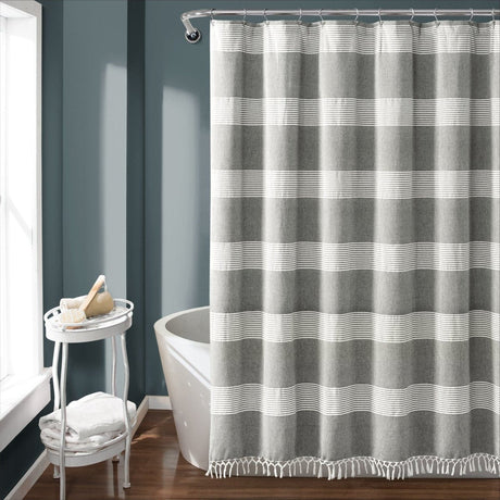 Tucker Stripe Yarn Dyed Knotted Tassel Shower Curtain