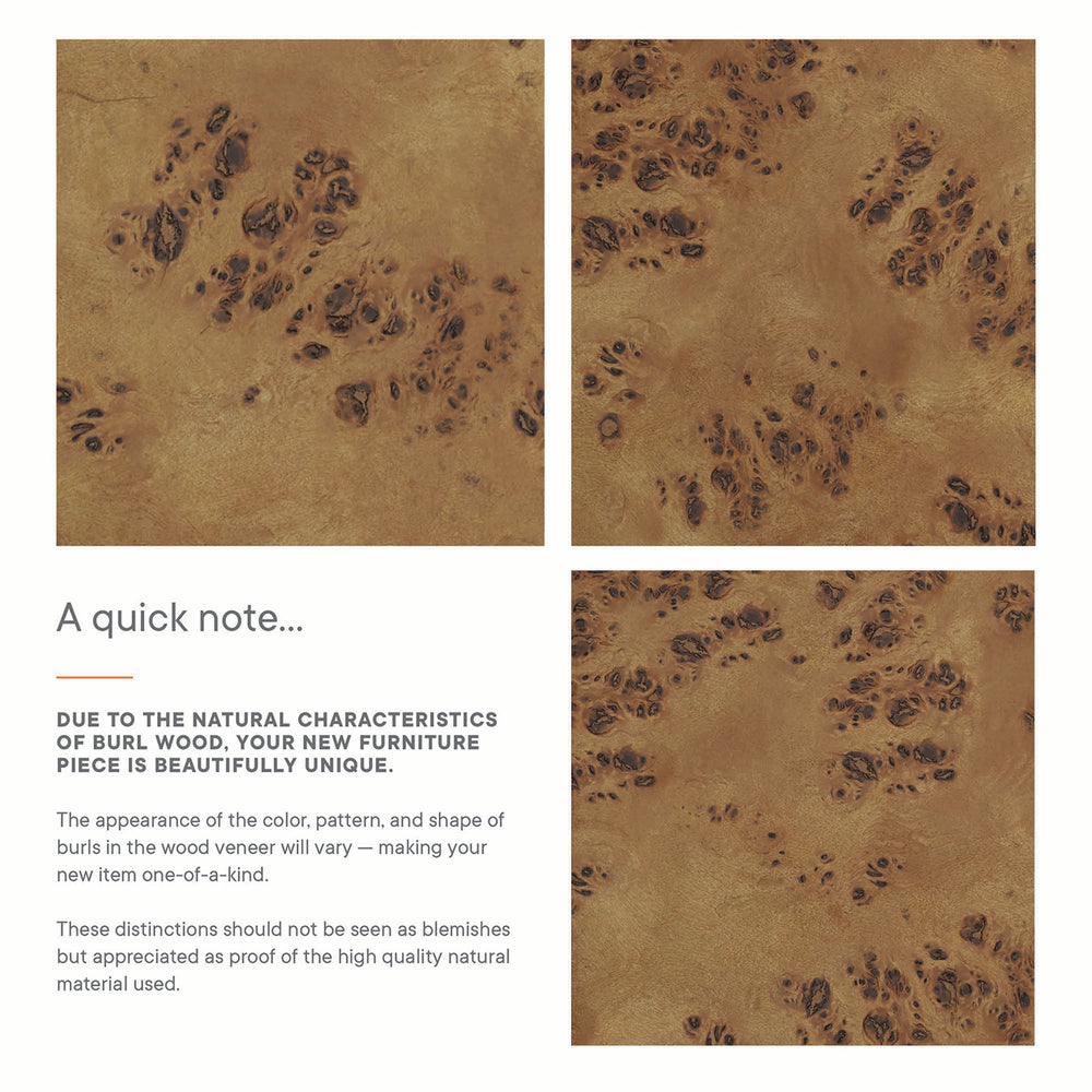 Discover the epitome of organic aesthetics and practicality with the Elysian 18" Burl Wood Bathroom Vanity Cabinet. Each vanity cabinet is uniquely crafted from exquisite mango wood, further adorned with a rich burl wood veneer, radiating a distinctive charm and character. A fixed top drawer and tapered wood legs add to the sleek design, while the spacious shelving�complete with a convenient plumbing cutout�offers ample storage space for all your bathroom essentials. While assembly is required, this vanity includes easy-to-follow assembly instructions. Sink basin and fixtures not included.