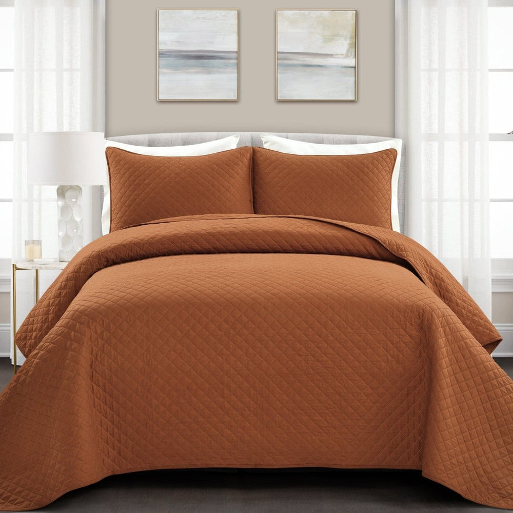 This soft and lovely Ava Diamond Oversized Cotton Quilt Set is perfect for the minimalist. This generously sized quilt set will brighten up any room and any mood. It easily fits well with any bedroom decor, and the diamond pattern adds interest and texture.