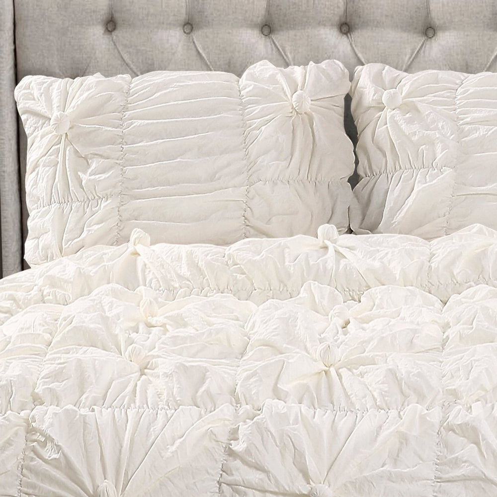 Our Bella 3 Piece Comforter Set offers a unique, romantic French look for your master bedroom or guest bedroom. Made from soft crinkle micro fiber, this ruched set will create a glamorous look for your bedroom.