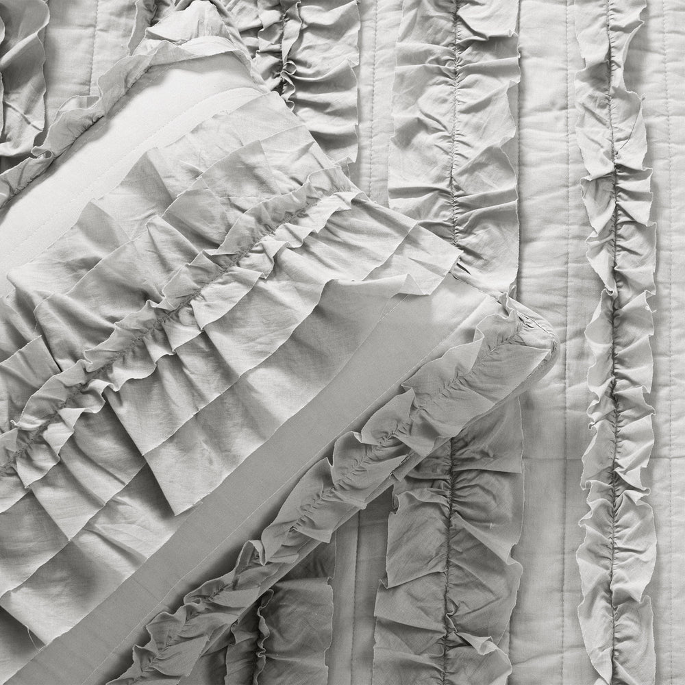 Due to the delicate nature of the ruffled embellishments, this Belle Quilt 2 Piece Set is not safe for machine washing and should be dry cleaned.