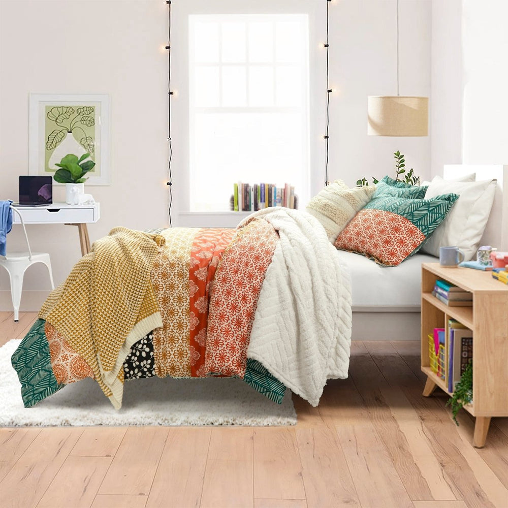 From top to bottom, the colorful patterns in each stripe brighten the room and add boho style to your space. The reverse side of our Bohemian Stripe Cotton Reversible Duvet Cover Set features a blue geometric print if you ever want to switch to a more toned down look.