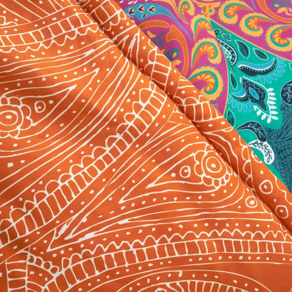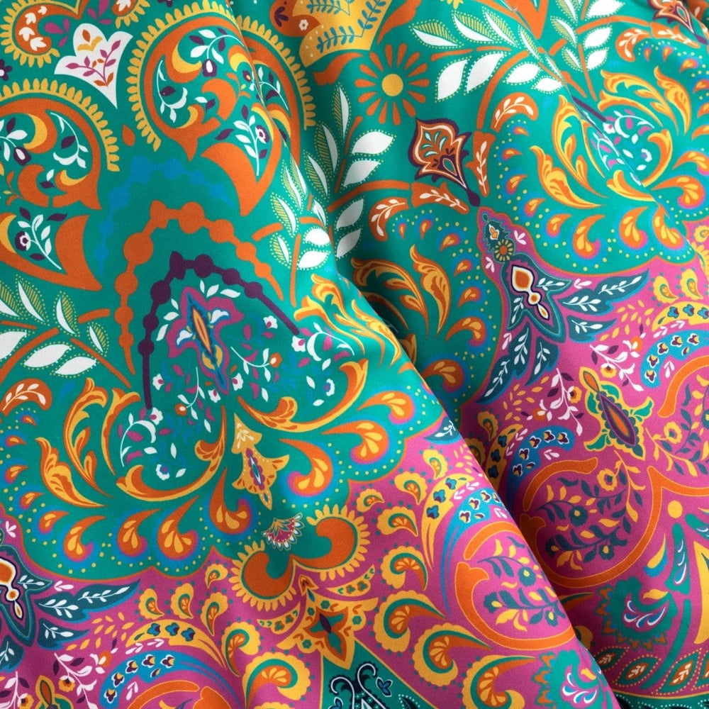 Complement your eclectic boho style with this colorful throw blanket. The printed design is almost like looking into a kaleidoscope with swirls of styled color and pattern. With its soft and lightweight polyester filling, this throw is perfect for cuddling up or layering on your bed. The reverse of this bohemian design features a captivating paisley pattern. This throw measures 50 by 60 inches. Please refer to label for full care instructions.