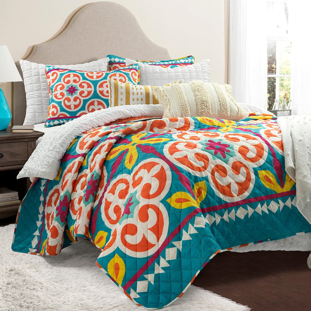 Don't be afraid of bright colors and bold designs, embrace them! This chic Boho Floral Reversible 3 Piece Quilt Set will turn your interior design dreams into reality. Maximize your home decor style with this fearless color palette to create a bedroom masterpiece that speaks to your inner designer.