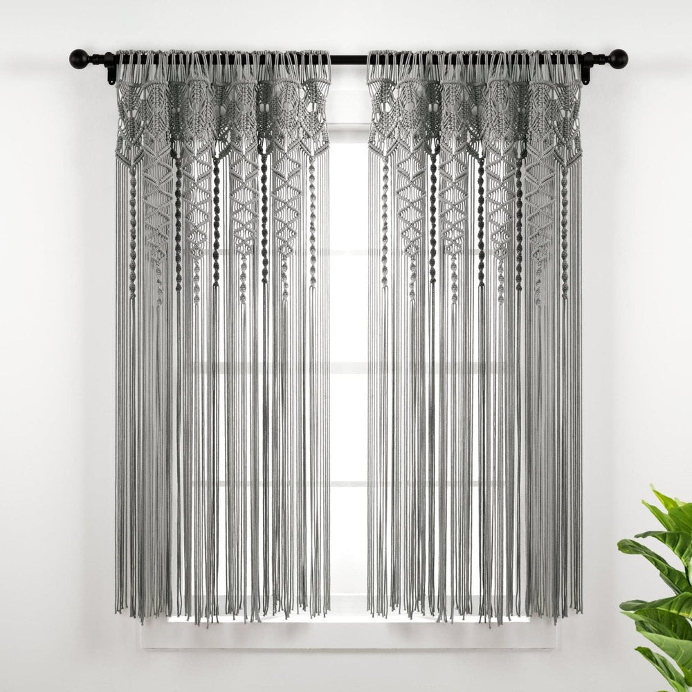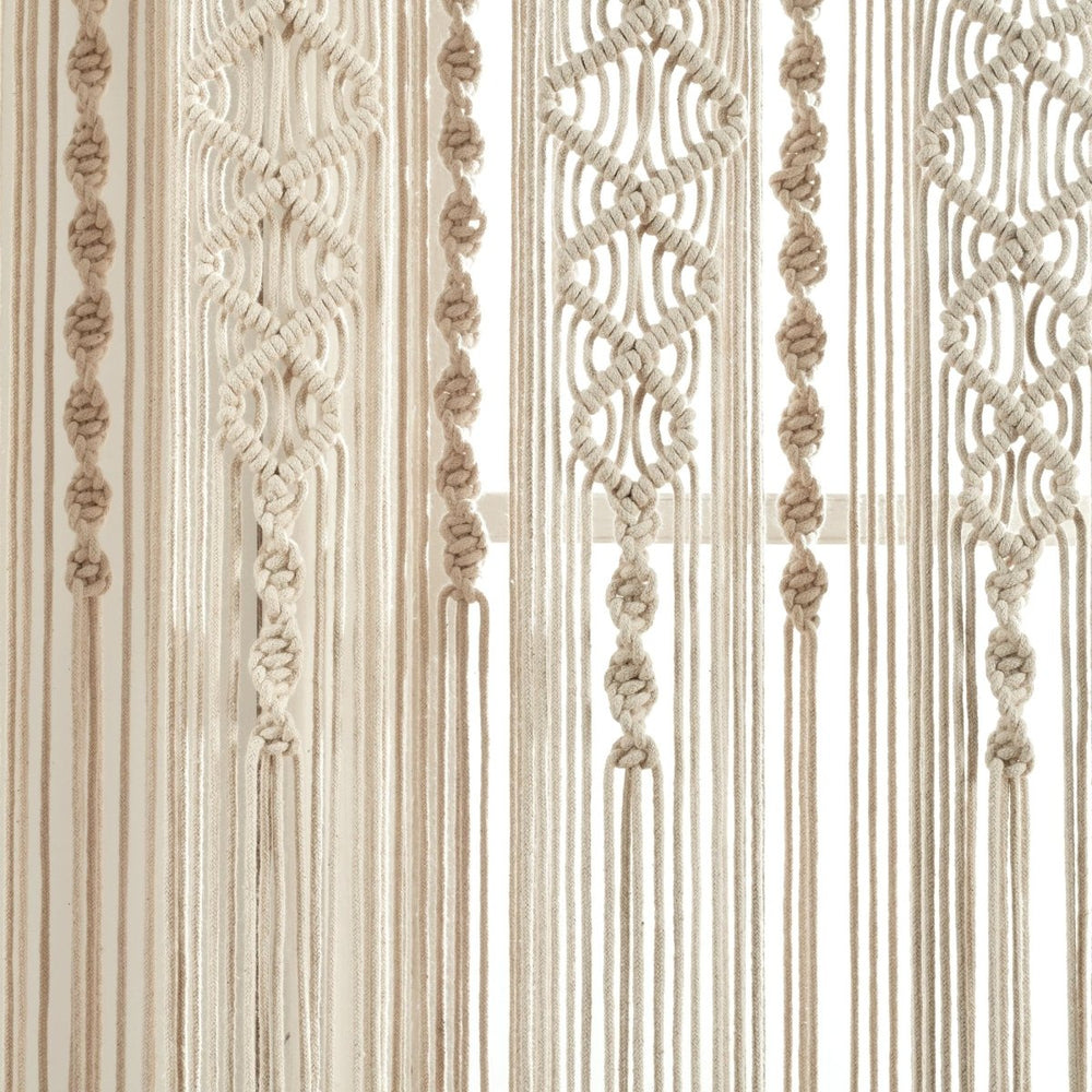Create a boho look in multiple rooms of your home with this multi-functional decorative piece. The macram?? is knotted and woven by hand to create textured geometric patterns. Use the Boho Macrame Textured Cotton Window Curtain as a window curtain, room divider or as wall art.