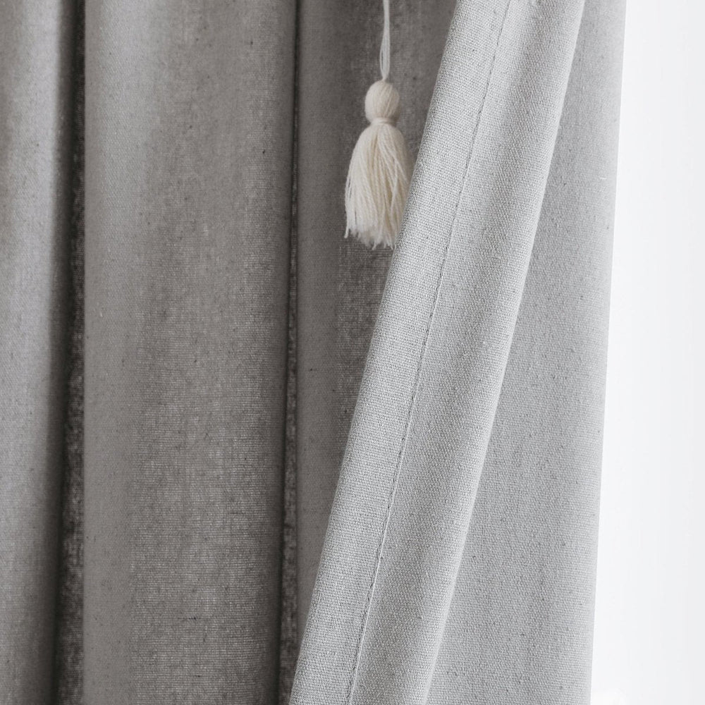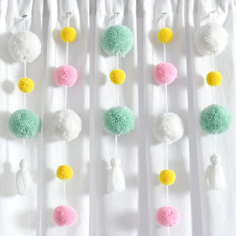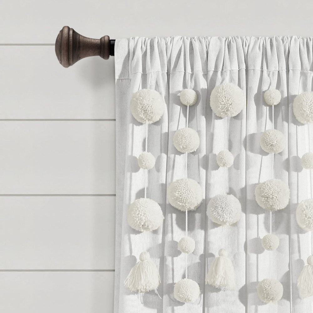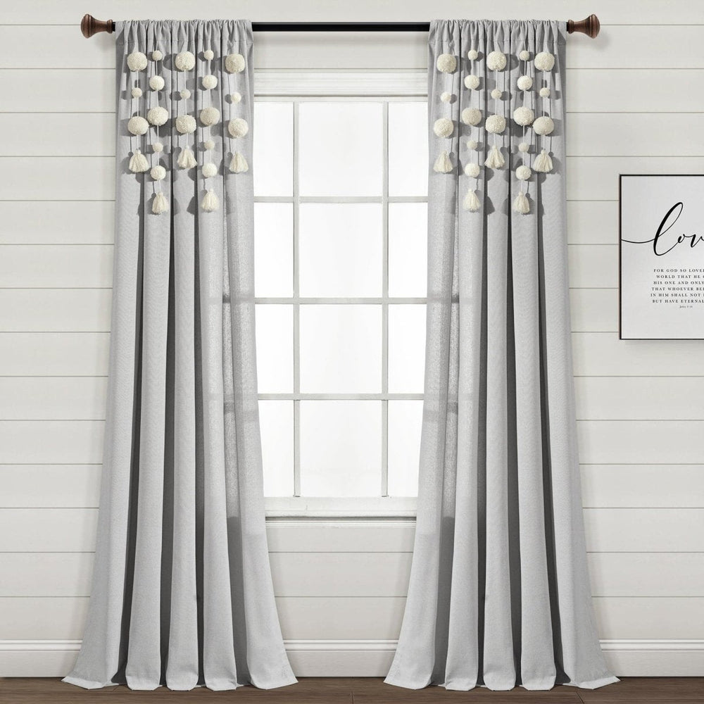 Boho Pom Pom Tassel Faux Linen Window Curtain Panel