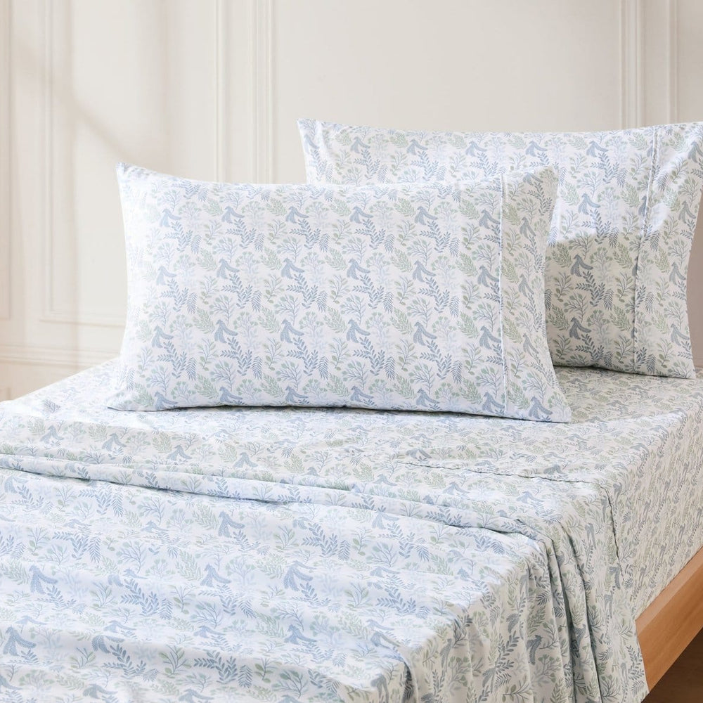 Add botanical basics with this soft sheet set, featuring a nature inspired print of colorful flowers, leaves, and ferns. Its calming, gender neutral print makes it a versatile and timeless option for any kids' bedroom. Made with soft microfiber, this multi-piece set includes 1 flat sheet, 1 fitted sheet with a 14" drop pocket, and 2 or 4 pillowcases. STANDARD 100 by OEKO-TEX® certified, all components have been tested and certified free from harmful substances. Machine washable for easy care.