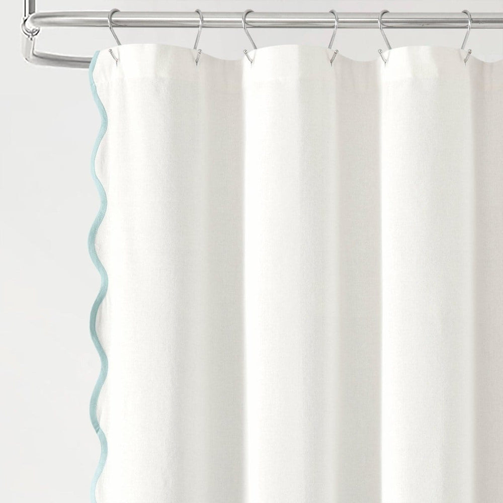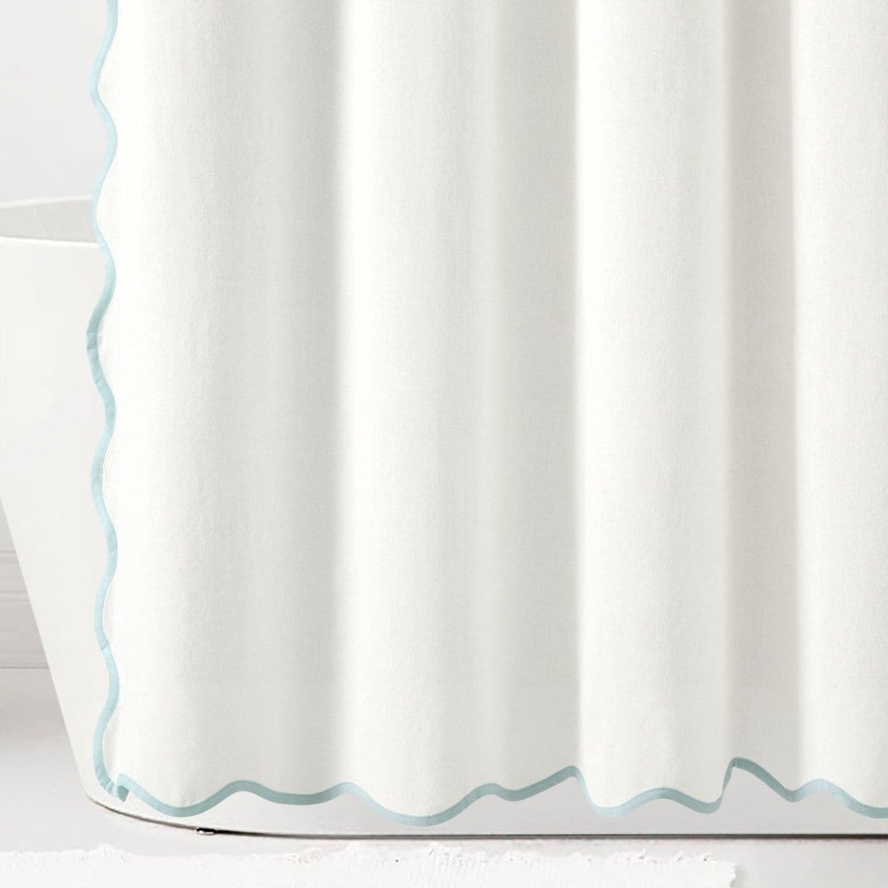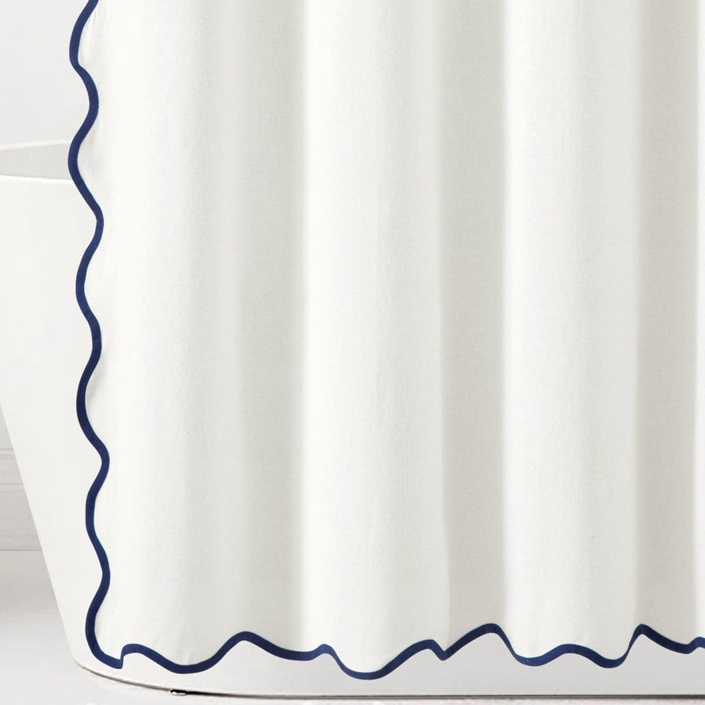 Bring a perfect blend of breezy seaside charm and practical elegance for your bathroom with this Coastal Chic Scallop Edge Shower Curtain. The scalloped edge design, reminiscent of the rolling waves along the shoreline, infuses your bathroom with a tranquil coastal ambiance.