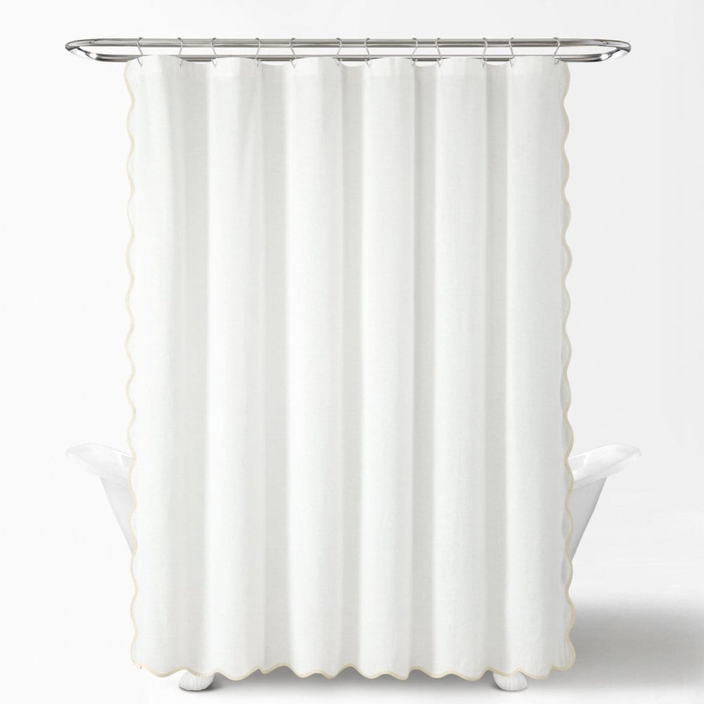 Create a serene, resort-like feel in your primary or guest bathroom with this Coastal Chic Scallop Edge Shower Curtain. Measuring 72 inches along each side, this shower curtain should fit most standard bathtubs. It installs easily with standard shower curtain rings or hooks (not included). Its opacity adds full privacy to the person taking a bath or shower.