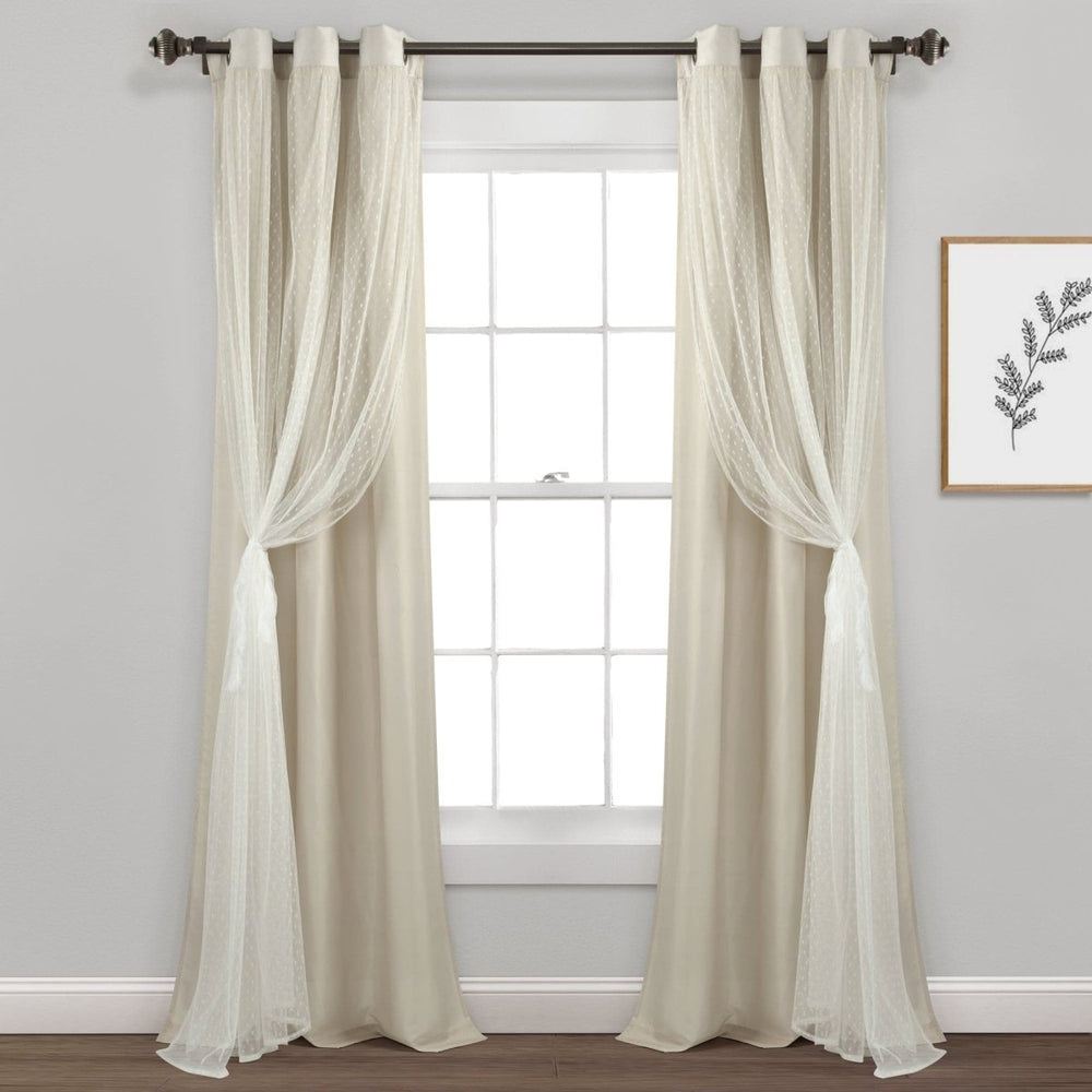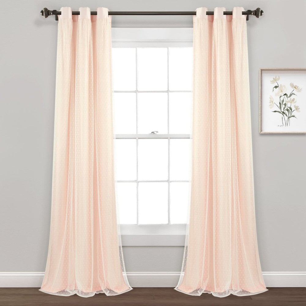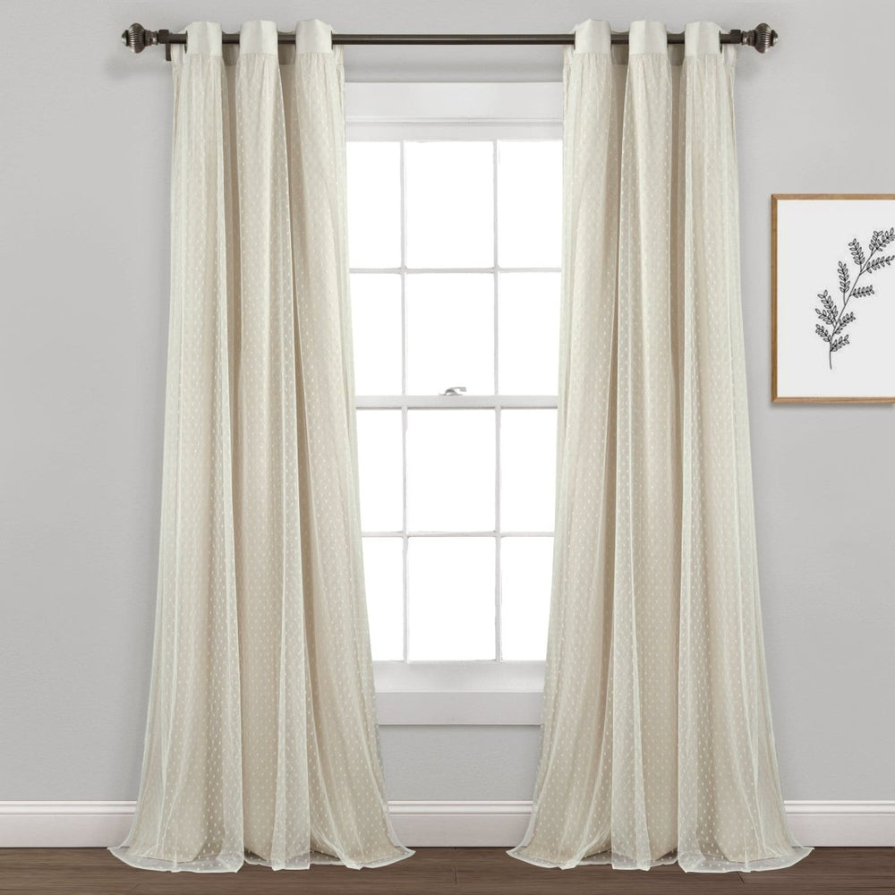 Frame the windows of your cottagecore home with these airy layered curtain panels. The textured sheer panel provides a soft design over the solid window treatment. Use the tie backs to style your Cottage Polka Dot Sheer Window Curtain Panel Set in various ways.