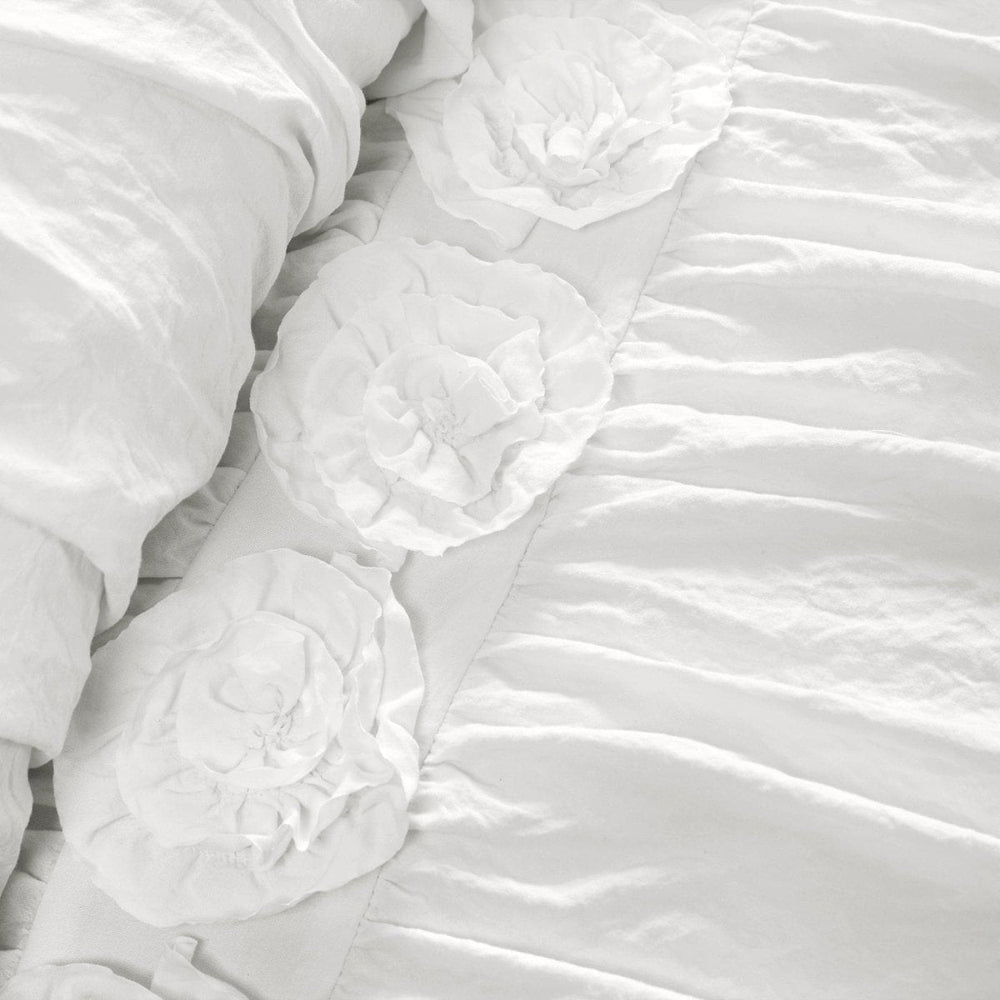Due to popular demand, our Darla Comforter Set is back! This is a perfect comforter set if you are looking for something that has great workmanship and also is simply beautiful. Along with the ruching, there is hand crafted flower details that create a soft and lovely vision for your bedroom.