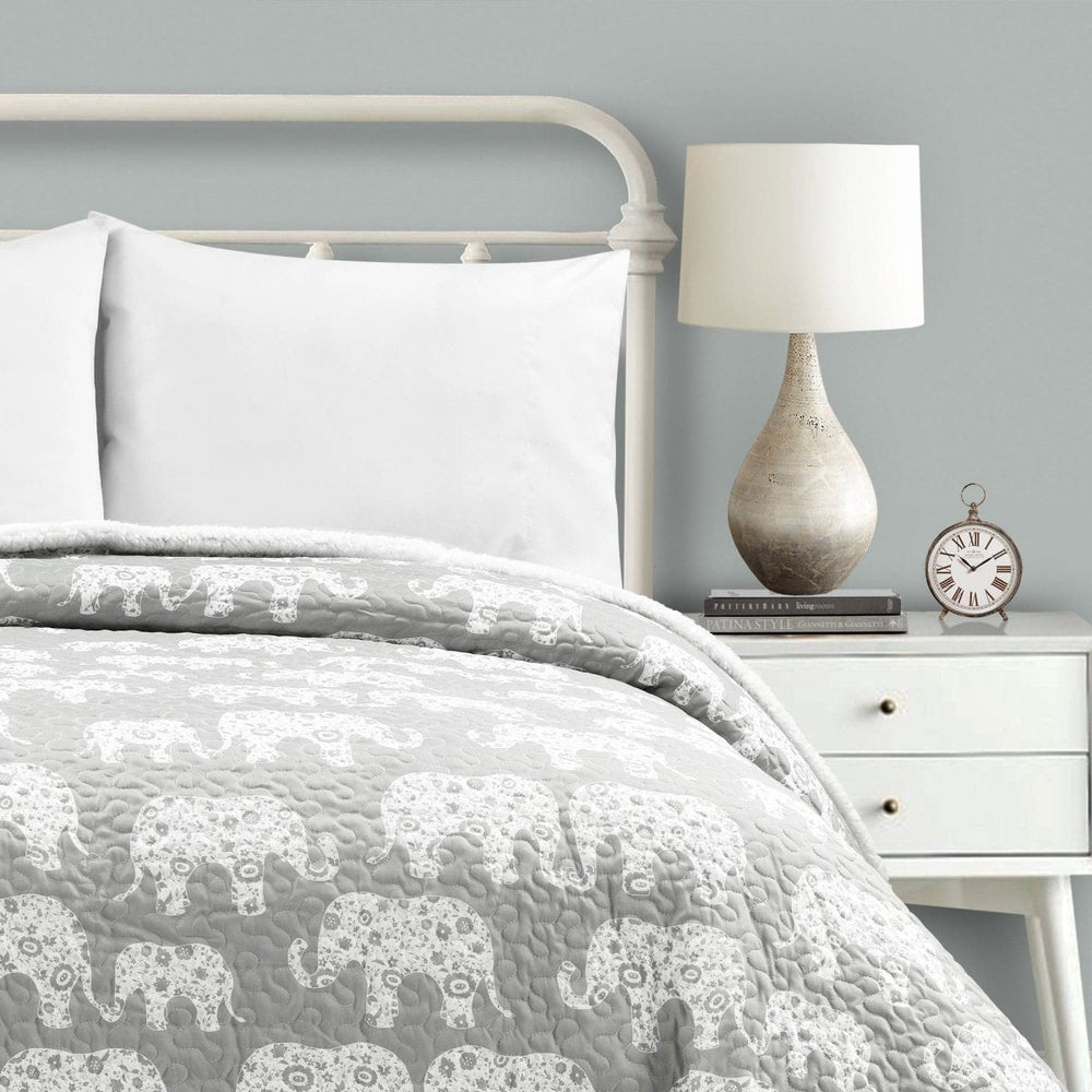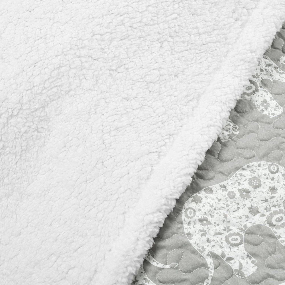 The elephant pattern on this Elephant Parade Sherpa Blanket/Coverlet creates a peaceful atmosphere for promoting a better night's rest.