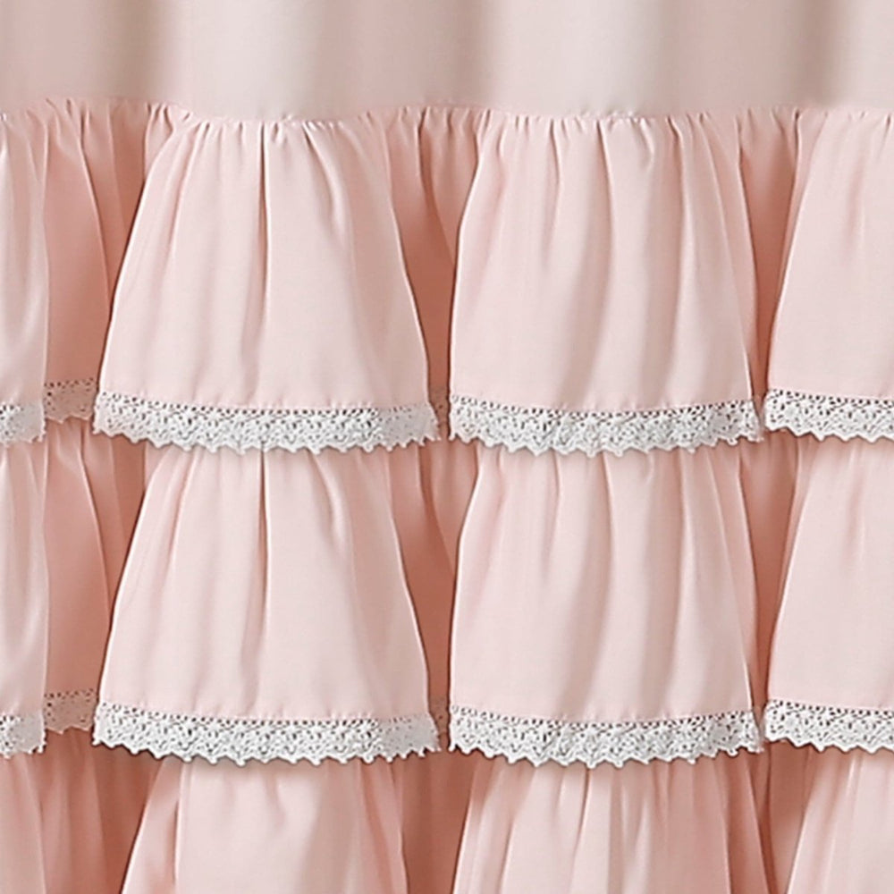 Quickly transform your bathroom into your own personal sanctuary with this stunning Ella Ruffle Lace Shower Curtain. The lower part of the shower curtain features layers of ruffles with lace borders, giving this shower curtain a look that creates a spa-like atmosphere.