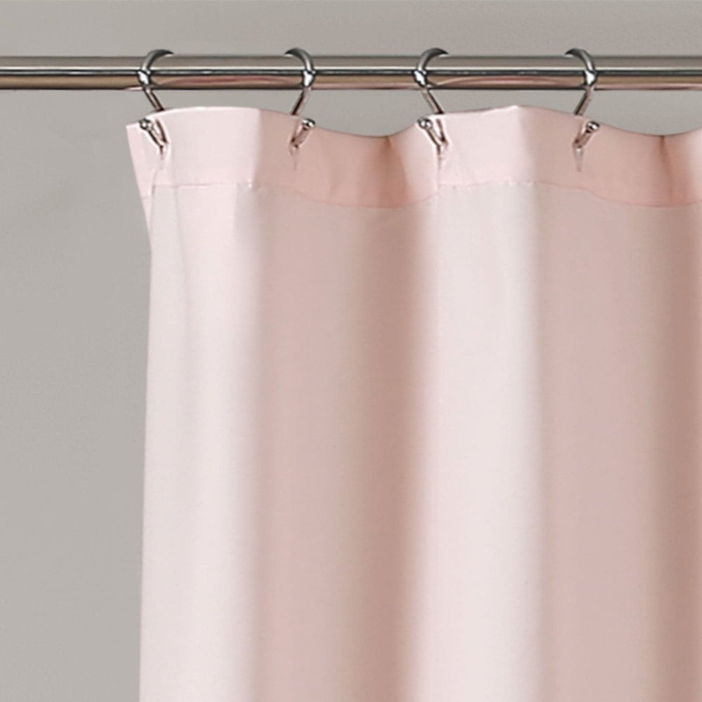 The Ella Ruffle Lace Shower Curtain measures 72 inches on each side. It hangs easily with any standard shower curtain rings or hooks.