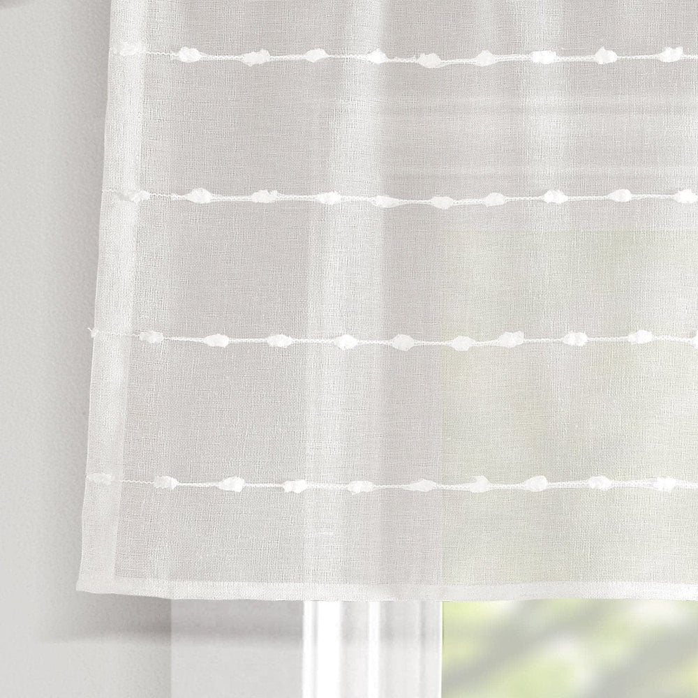 Decorate the windows of your farmhouse home with this stylish sheer valance. The simple textured pattern fits well in a kitchen, bathroom or den. Coordinate this valance with the matching tier set or full length curtains for more privacy.
