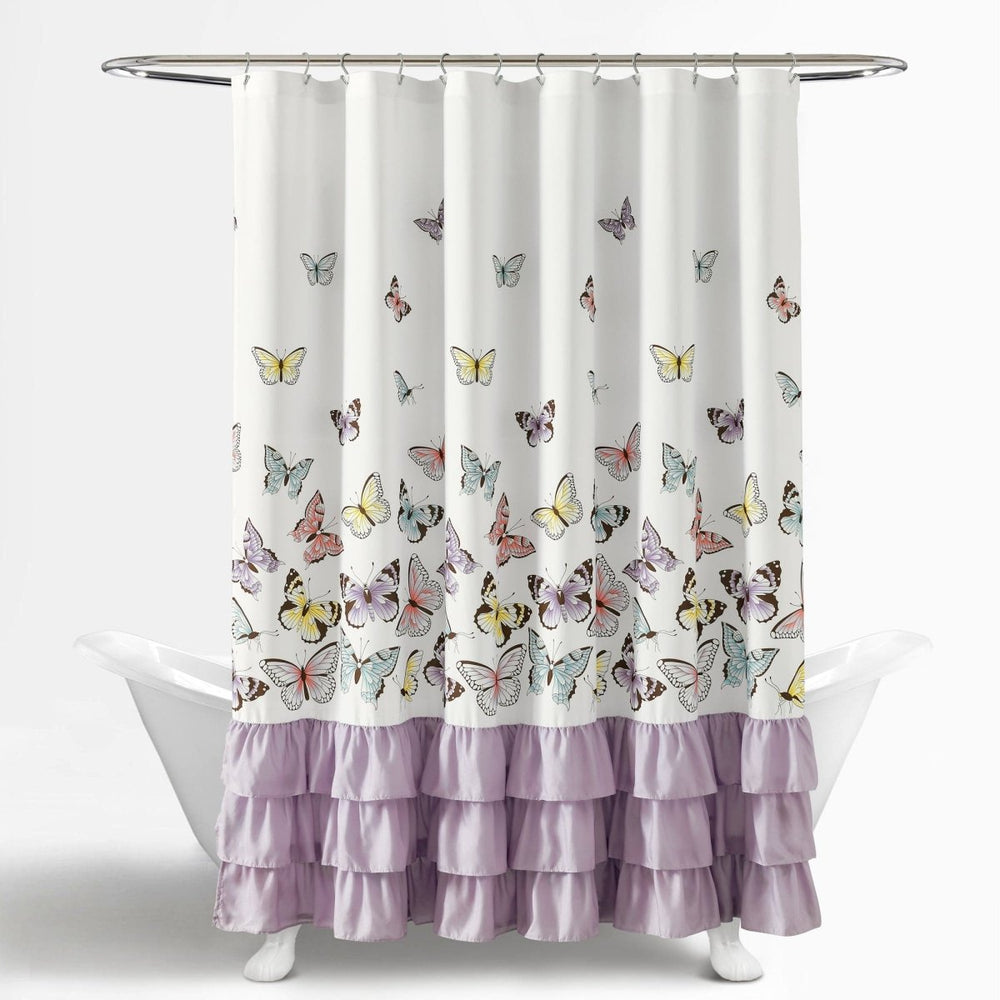 The colorful and lively Flutter Butterfly Shower Curtain will turn any girl's bathroom into a dream come true. The butterflies add life to the room, while the ruffles add a an enchanting touch and interesting texture.