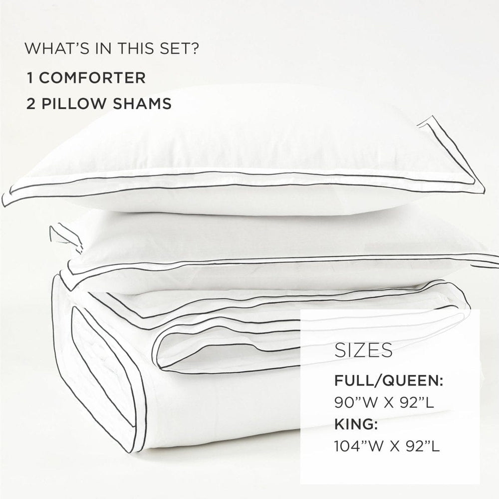 This 3-piece Hampton Double Flange Embroidered Contrast Edge Comforter Set includes 1 comforter and 2 standard pillow shams. This 100% cotton fabric bedding set offers softness and breathability. The prewashed cotton fabric ensures long lasting softness and prevents shrinking. The polyfill is so soft and light as air, perfect for hot sleepers or great as an extra layer for those cold sleepers who layer up to keep warm.