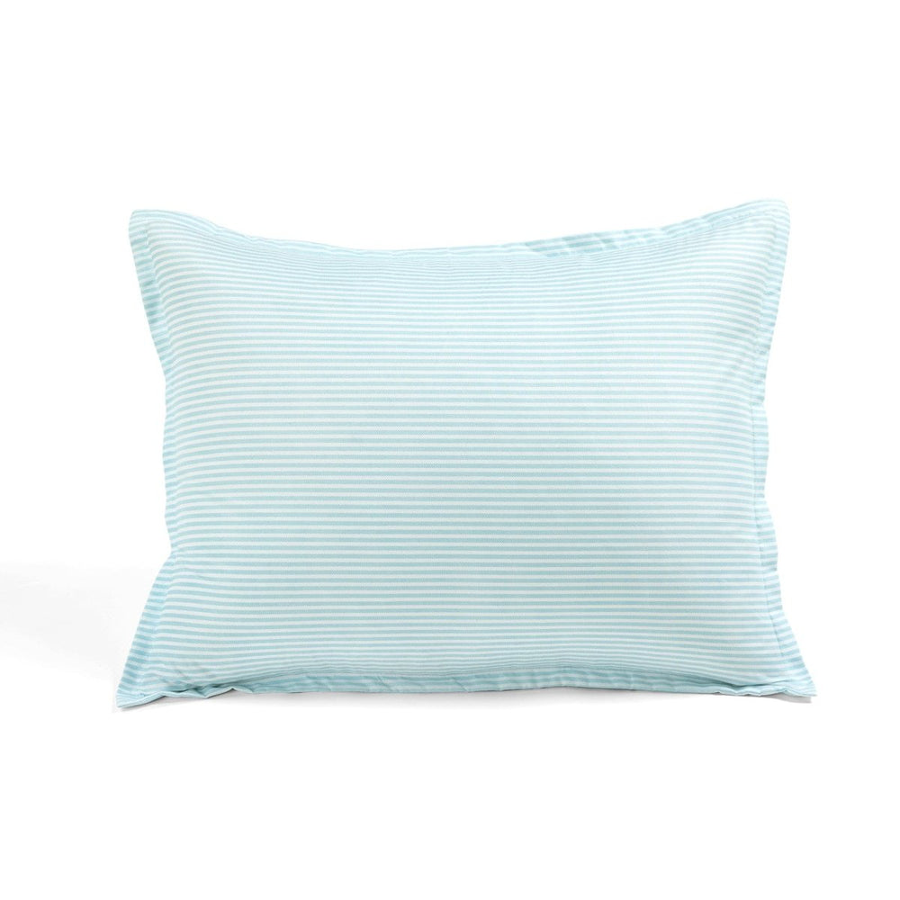 The reverse side of the Harbor Life Reversible Quilt Set is thin blue and white stripes. The reversible nature of this quilt gives you the option to switch up the look of your room as often as you like just by turning the quilt over to the other side.