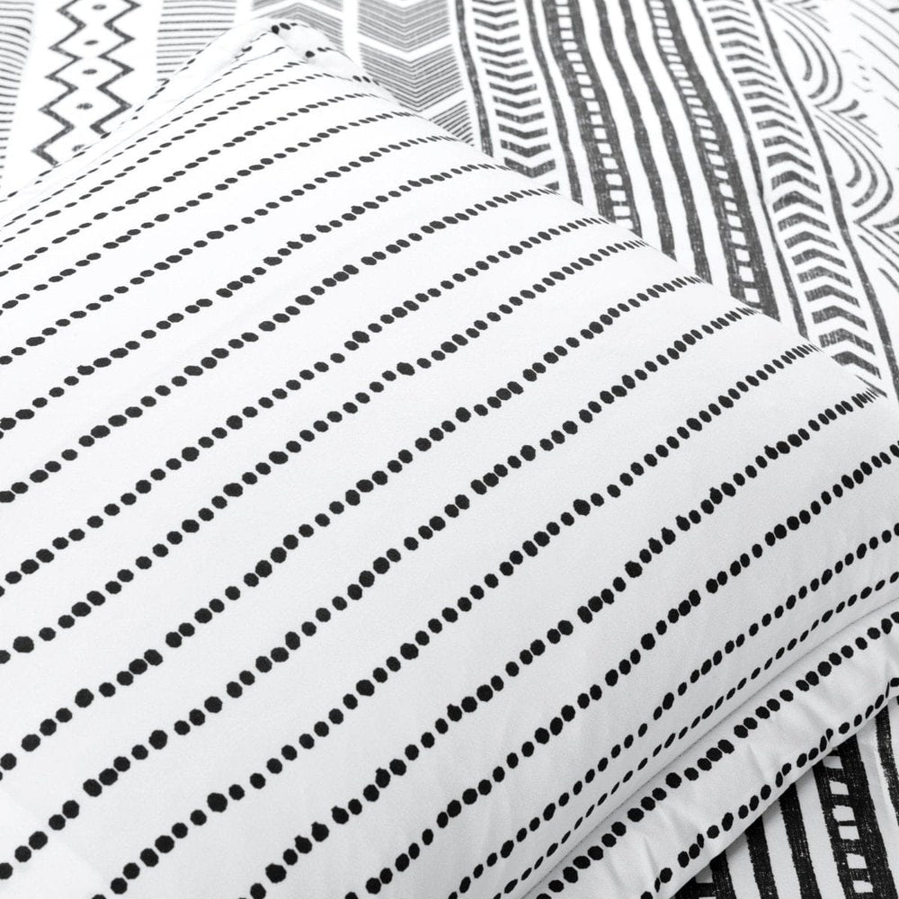 The term hygge is meant to represent everyday little joys and the celebration of family and warmth. This Hygge Geo Reversible Cotton Duvet Cover 3 Piece Set embraces the cozy connections we create with rows of familiar geometric patterns on the front and a reverse with a simple dotted design.