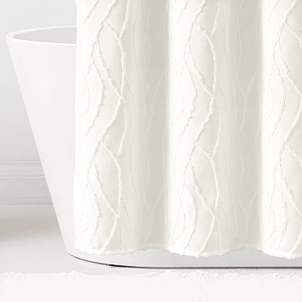 Add dimension to your primary or guest bathroom with this unique Jacquard Wave Shower Curtain, bringing a light and relaxing style to your space. The solid off-white color and textured design makes it easy to style with your existing decor.