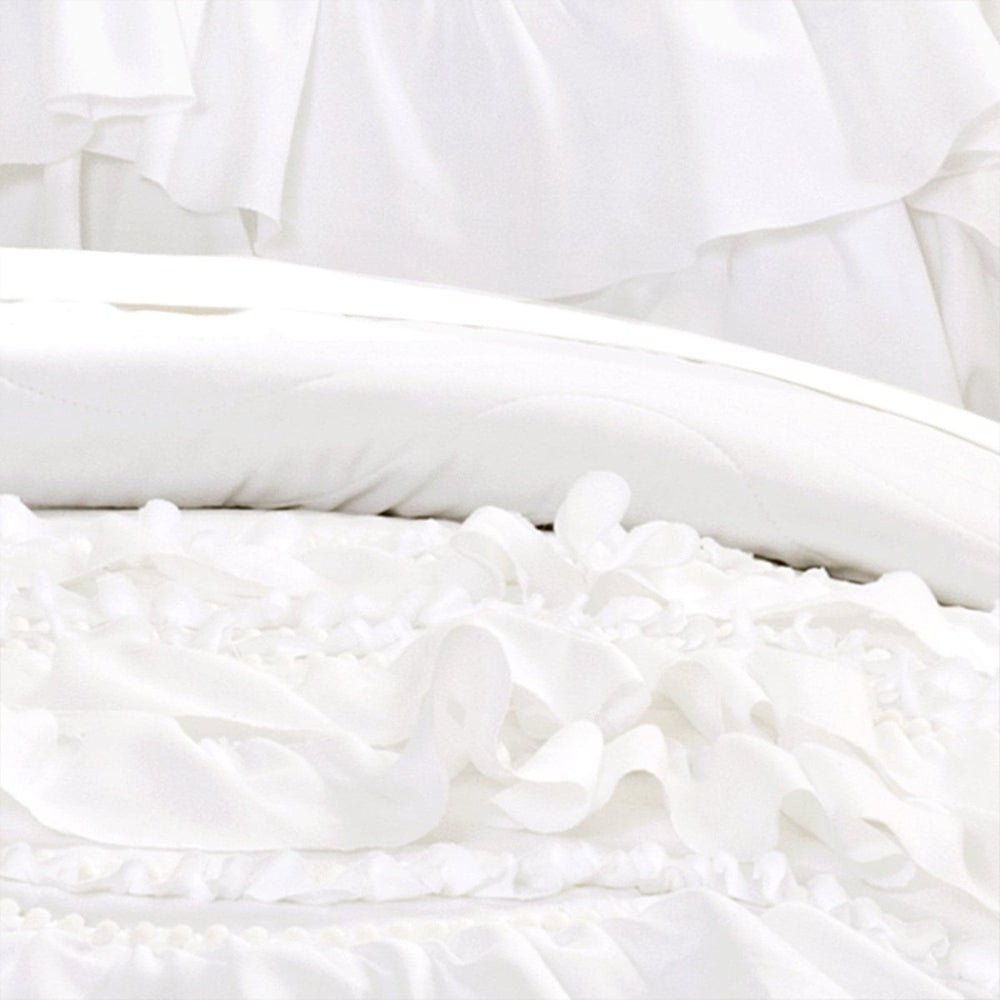 The attention to detail and the level of talent and skill that has been invested in the technique and artistry in this Kemmy Quilt 2 Piece Set is unmatched. The sassy ruffles underlying the bottom of this piece combined with the pompom trim on top is unquestionably a crowd pleaser.